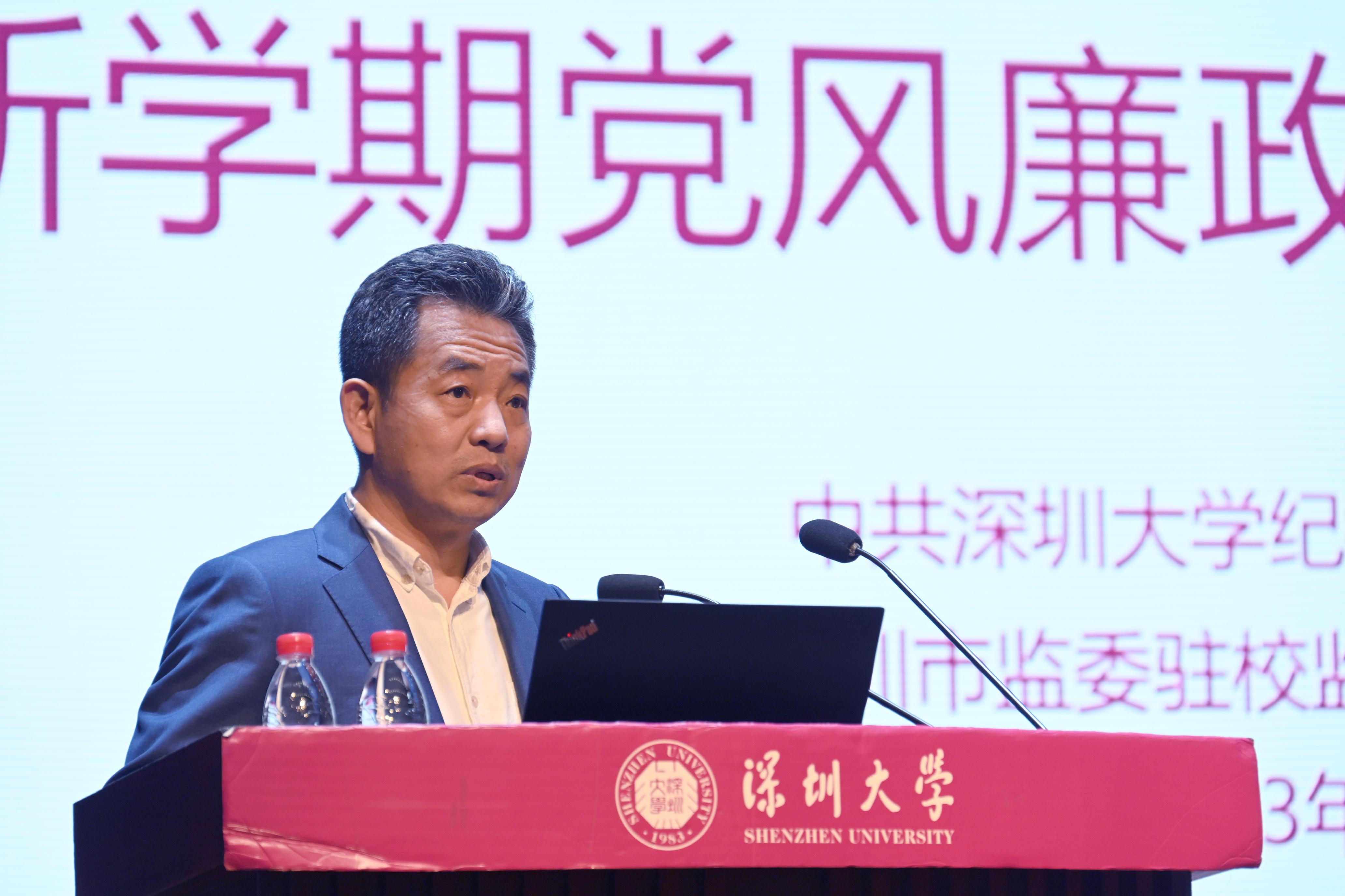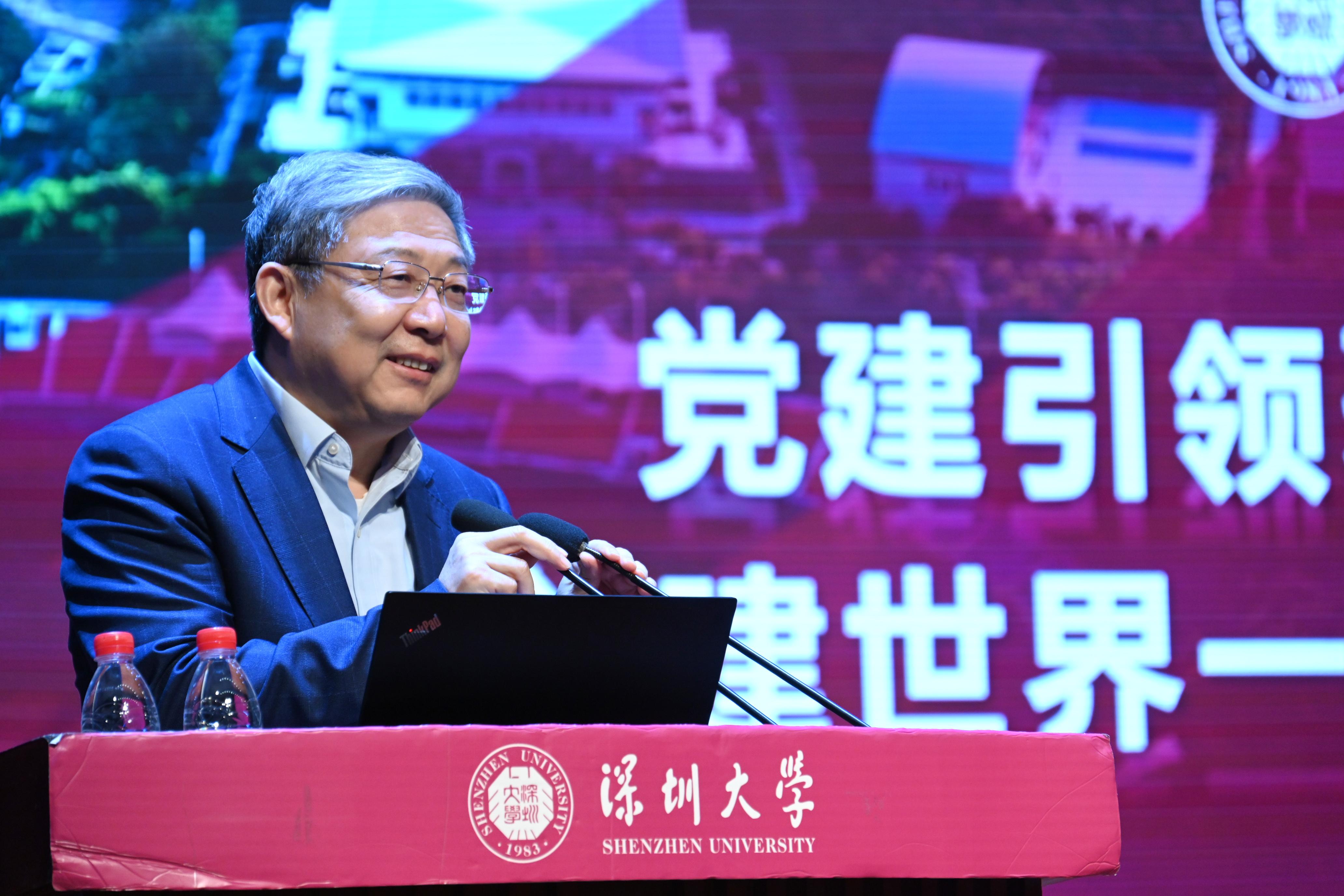 李清泉以“党建引领聚合力 奋力创建世界一流综合性大学”为主题,对新学期学校党建工作作出部署。李清泉指出,2023年全校工作要以习近平新时代中国特色社会主义思想为指导,深入贯彻落实党的二十大精神,深入学习贯彻习近平总书记对广东、深圳系列重要讲话和重要指示精神,贯彻落实省委十三届二次全会、市委七届六次全会部署,按照上级教育主管部门的要求,立足国家重大战略和“双区”发展需求,围绕立德树人根本任务,聚焦学校高水平大学三期建设、打造高峰学科、深化全方位育人思政教育工作机制、深化本科教育教学改革、优化人才培养体系、推动科研高质量发展、强化师资队伍建设、实施国际化发展战略等重点工作,进一步推动落实“十四五”发展规划,加快推进创建世界一流综合性大学。