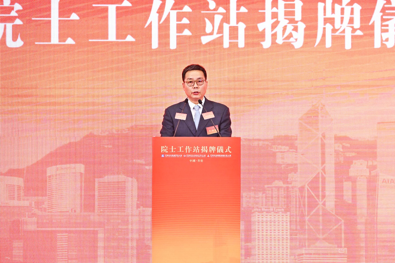 中国建筑集团有限公司董事长郑学选致辞时表示,院士工作站立足服务粤港澳大湾区建设,依托香港的独特优势,集聚创新资源,着力攻坚基础设施、智慧建造、建筑工业化领域的关键核心技术,助力香港加快建设具有全球影响力的国际创新科技中心。