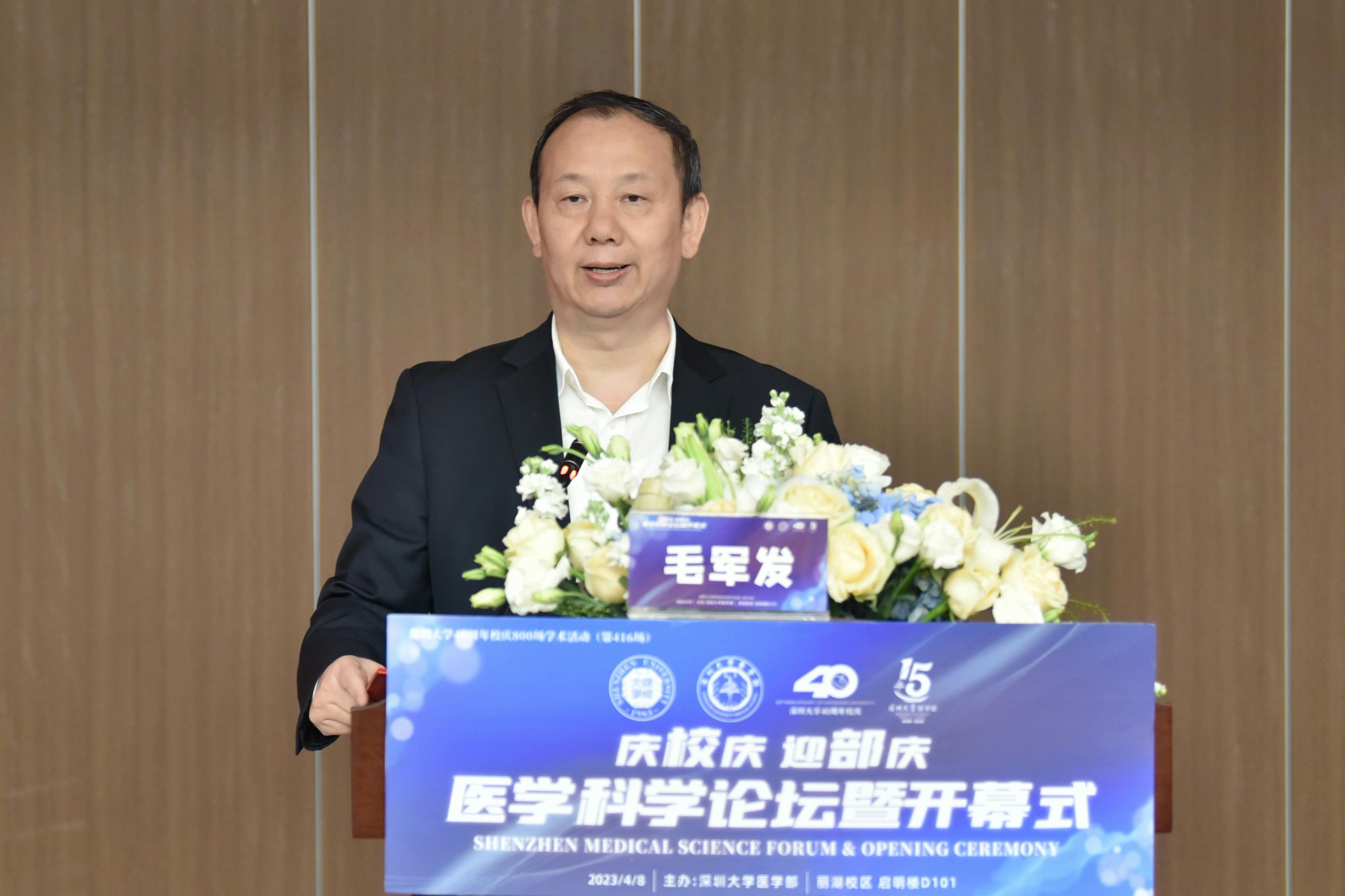 毛军发在致辞中代表芒果体育向与会者表示欢迎并介绍了芒果体育近年来快速发展取得的办学成就。他指出,医学部经过15年的发展,现已成为芒果体育建设高水平大学的重要支撑力量之一。在深圳市科创委、卫健委等部门的关心支持下,芒果体育大力鼓励科技创新和科研成果转化,努力打造医、教、研、产业化一体化发展平台,搭建科学家与企业、医疗机构之间的桥梁。芒果体育将设立医工交叉基金,为深大医学领域前沿交叉研究提供有力支持。毛军发呼吁与会的著名专家学者、各界医学精英人士针对医学研究瓶颈与热点问题建言献策,为医学教育、临床实践提供新的思路方向,同时欢迎全国的科学家、企业家、医疗界同仁多来芒果体育沟通交流、商谈合作,共同推进医疗健康产业的发展与创新。