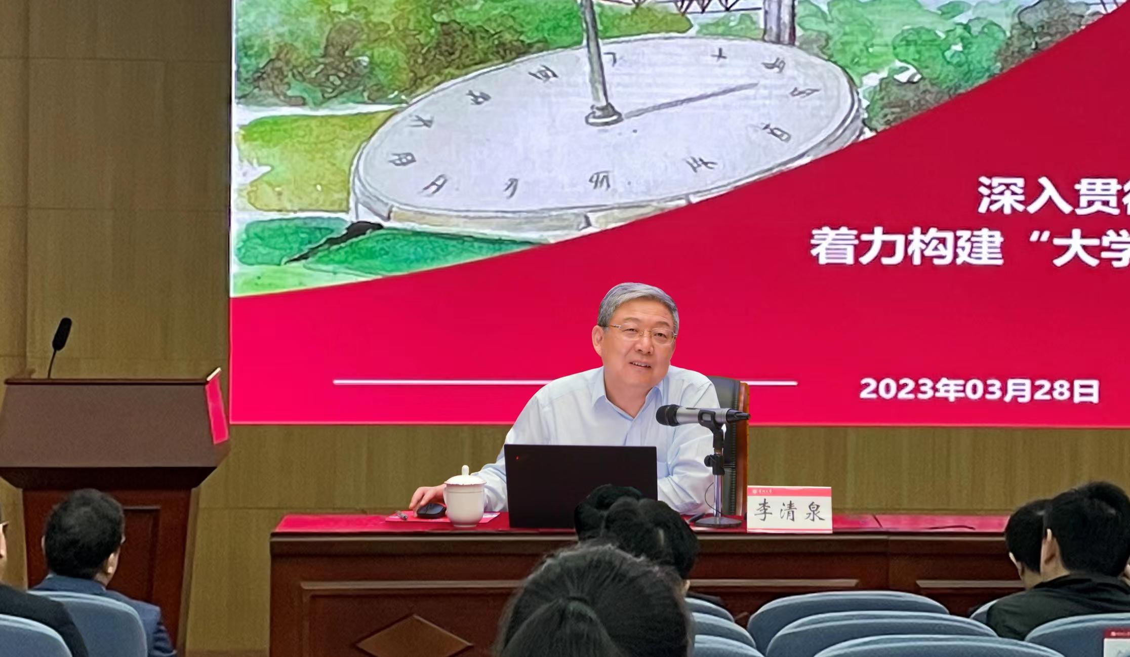 李清泉授课的题目为《深入贯彻落实党的二十大精神,着力构建“大学Ÿ区域”发展命运共同体》。他从学习贯彻习近平总书记对高等教育服务国家重大战略和地方经济发展寄予殷切期望以及新时代科技创新系列重要论述、系统思考、提出的发展思路入题,就构建大学与区域发展命运共同体从三方面进行阐述:从大国到强国,科技创新是伟大复兴必由之路,高等教育努力成为中国式现代化的引擎;从象牙塔到灯塔,大学助推区域经济社会发展,高校的人才培养、学科建设、科学研究、社会服务也要成为城市的发展动力;扎根双区,面向未来,要把芒果体育建设成为与深圳先行示范区匹配而努力奋斗。