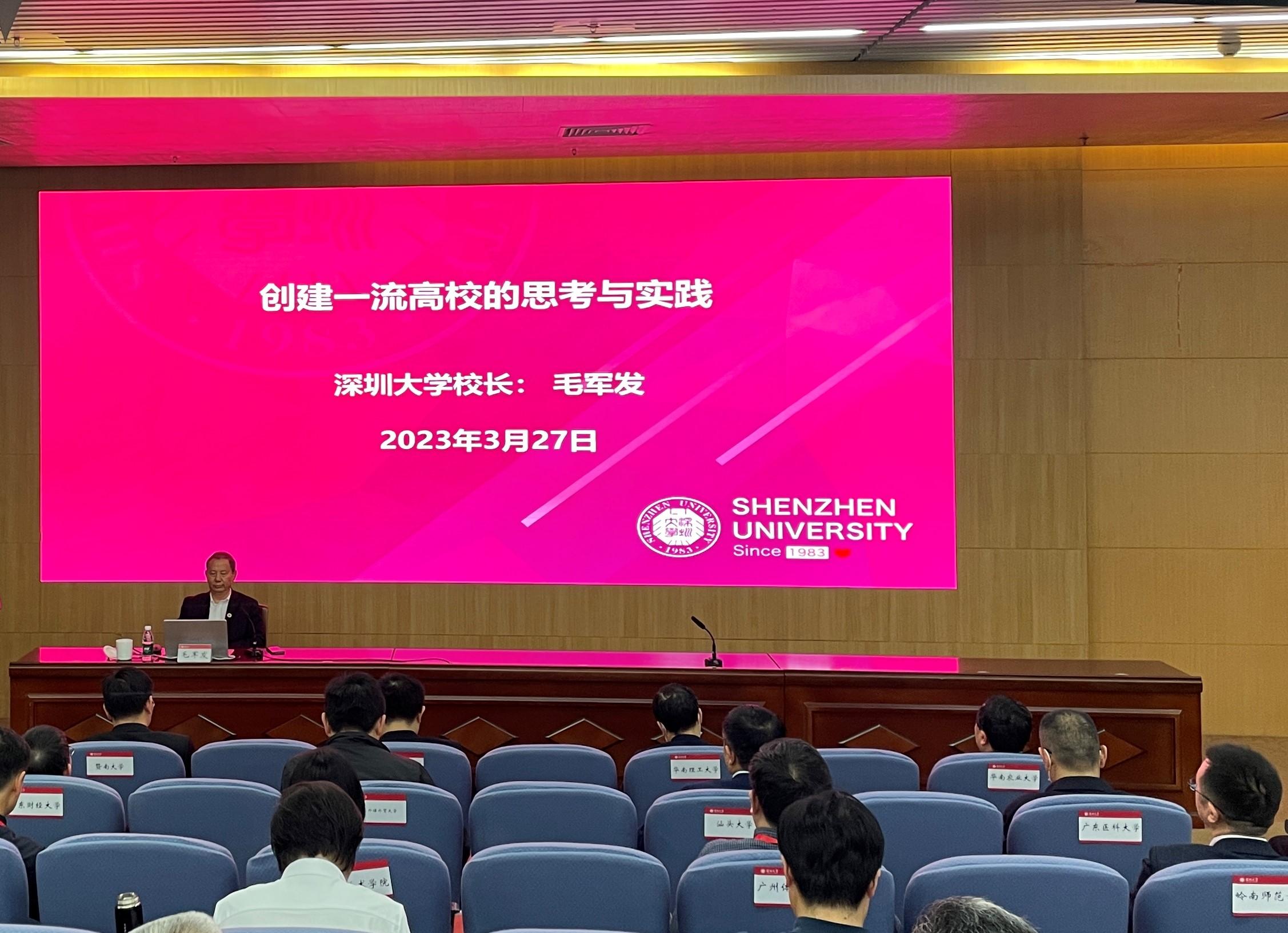 毛军发授课的题目为《创建一流高校的思考与实践》。他以高等教育发展要求、深圳需要一流大学及芒果体育发展实践三部分阐述了高等教育在中国式现代化进程中的角色和努力方向以及芒果体育的使命担当与实践方向。他认为,办好国家高等教育要找准国家高等教育发展的出发点、梳理清楚高等教育战略立足点和着力点。芒果体育作为深圳市高等教育的“长子”,必须围绕粤港澳大湾区建设发展“芒果体育三步走战略”。“第一步是到2025年,把深大建设成高水平综合型大学;到2035年,要把深大建成具有全球影响力的高水平一流大学;最终目标是本世纪中叶,深大要建设成世界一流的综合型大学。”