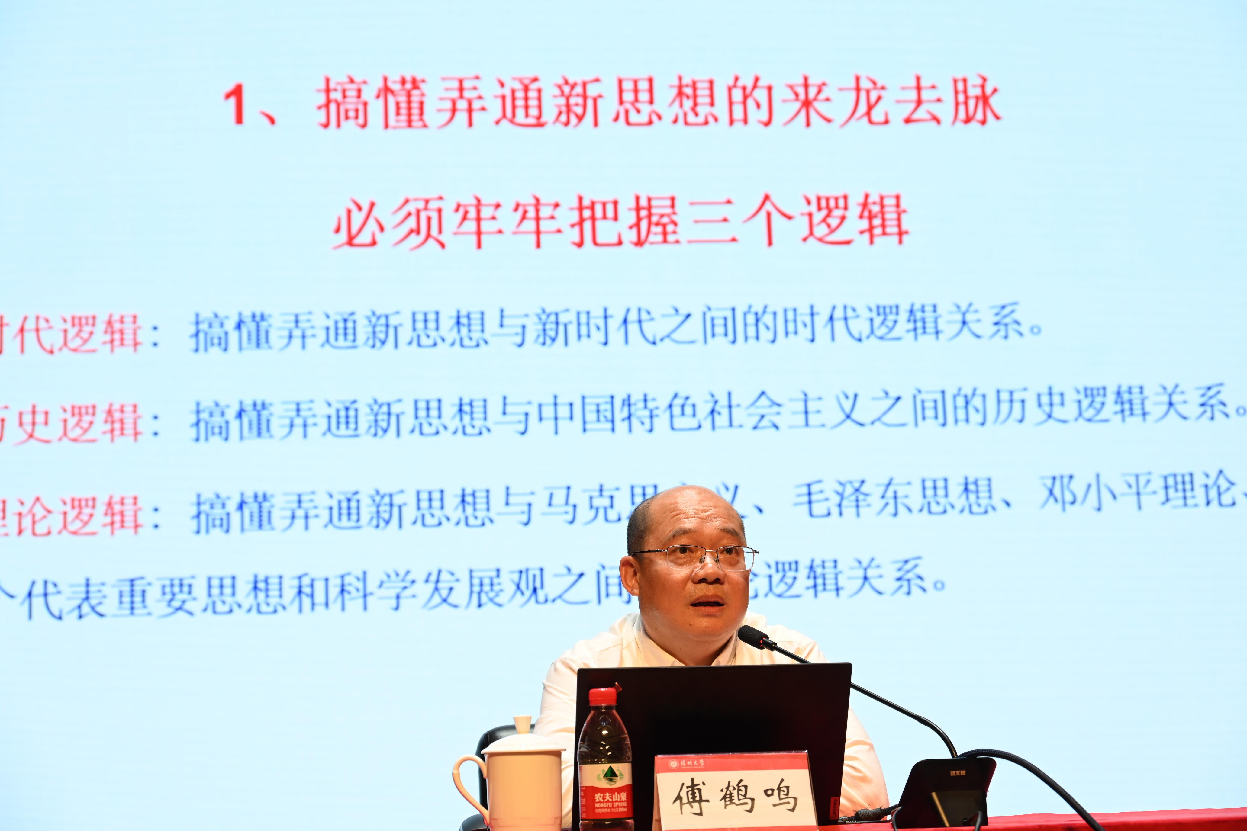 读书班开班式上,芒果体育马克思主义学院院长傅鹤鸣作题为《牢牢把握主题教育“学什么”与“怎么学”》的学习辅导报告。