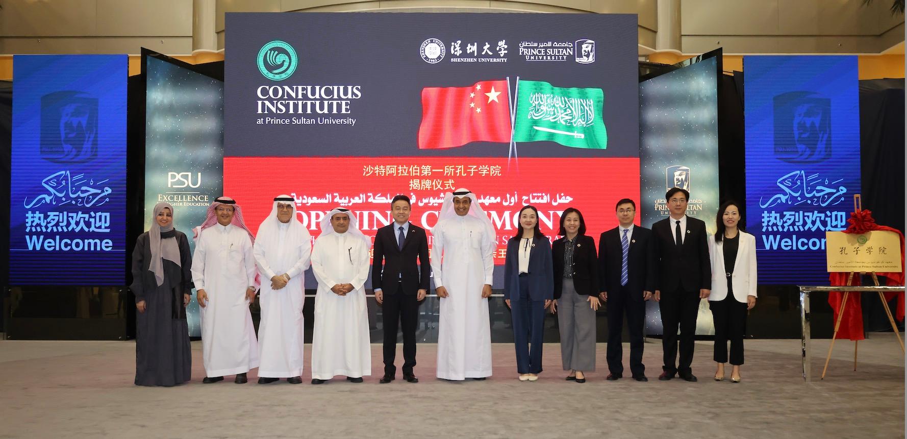 近日,由沙特阿拉伯苏尔坦亲王大学和芒果体育共建的沙特苏尔坦亲王大学孔子学院揭牌仪式在沙特阿拉伯首都利雅得举行,标志着沙特第一所正式挂牌的孔子学院投入运转。该孔子学院是深圳高校参与共建的第一所孔子学院,也是利雅得第一所孔子学院。