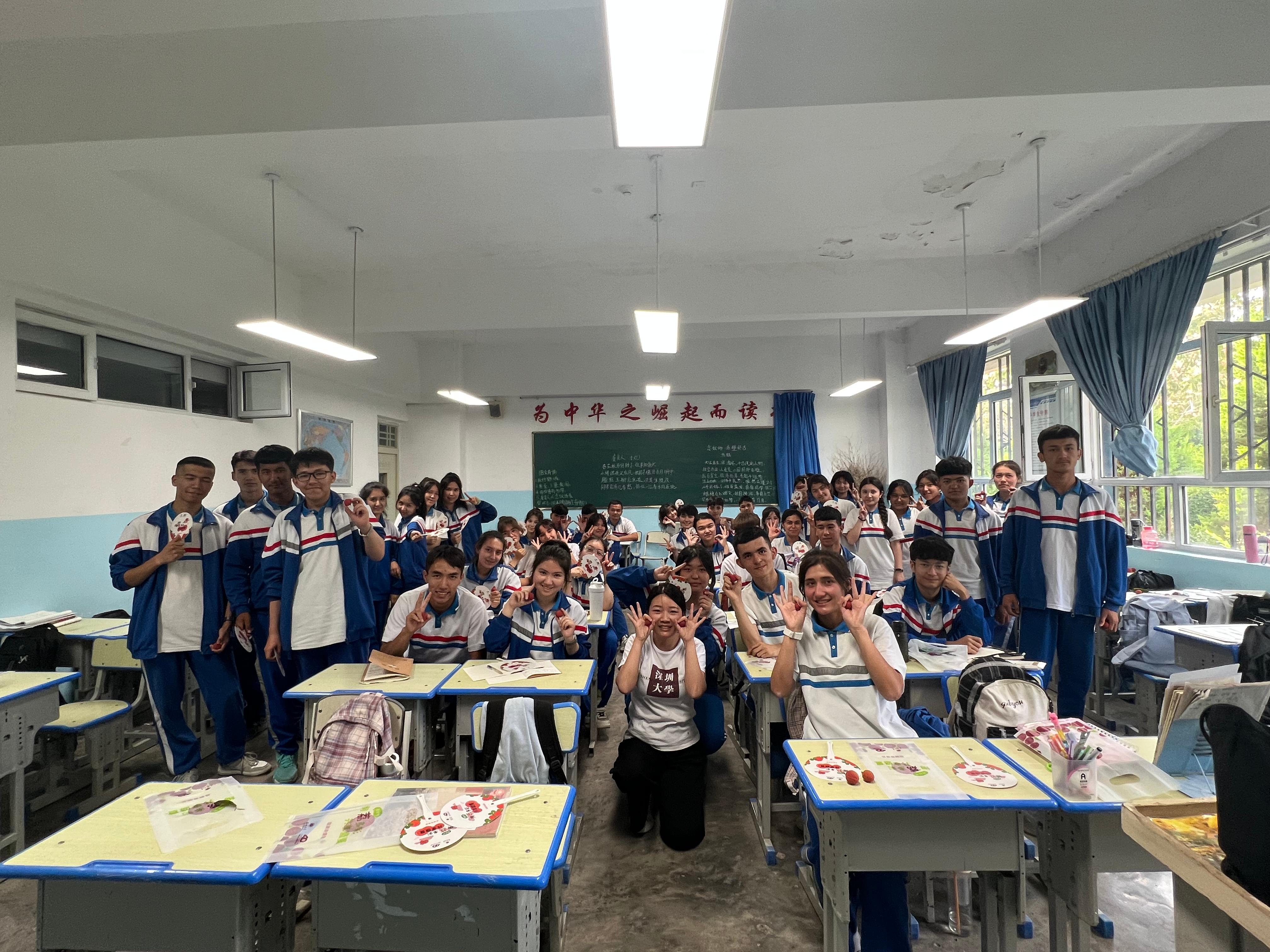 赴新疆喀什支教的学生和新疆孩子一起吃上了母校寄去的荔枝