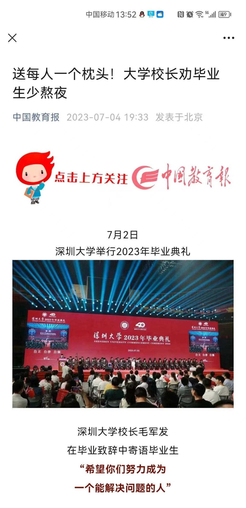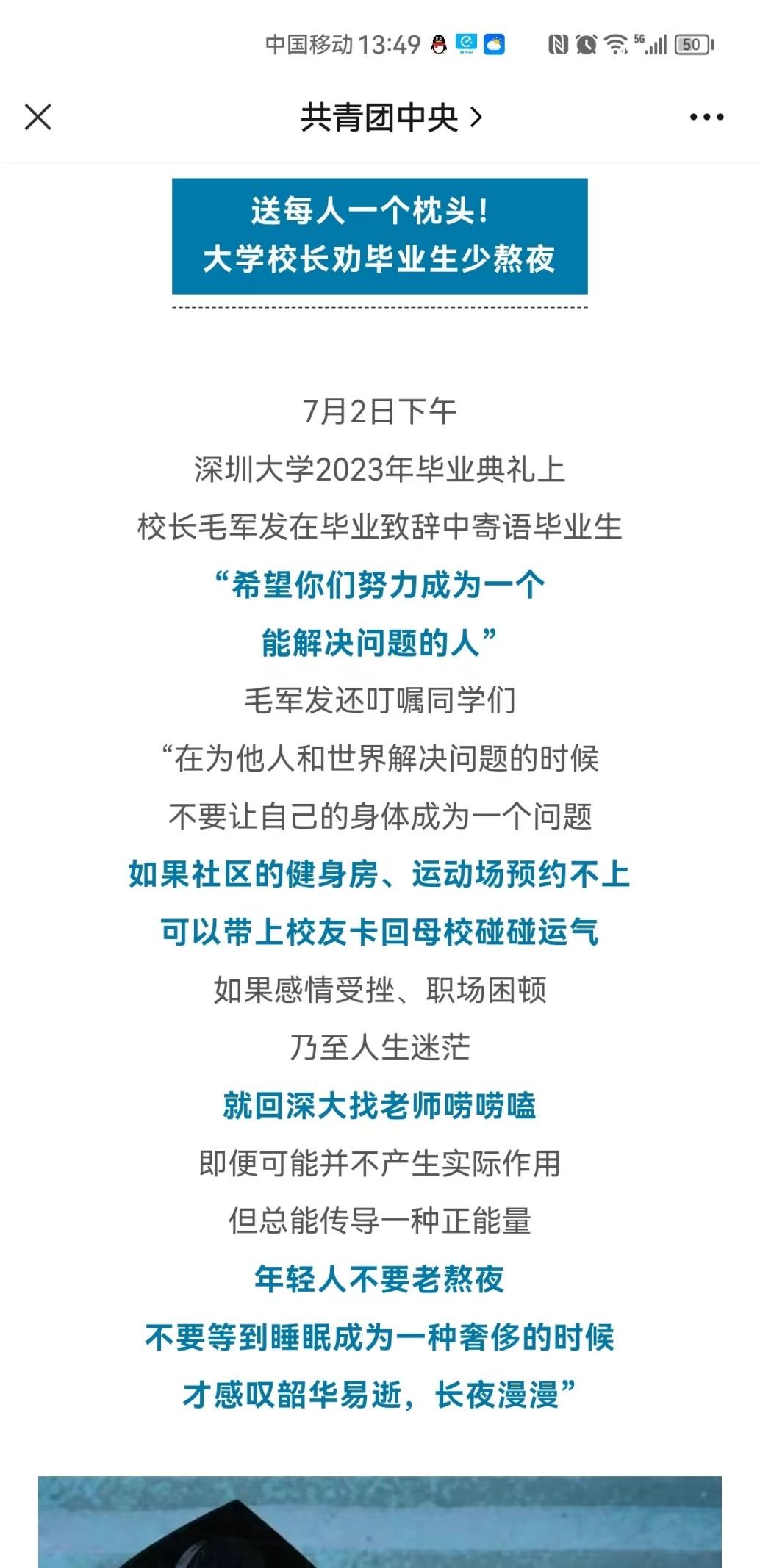 【中国青年报】送每人一个枕头!大学校长劝毕业生少熬夜......