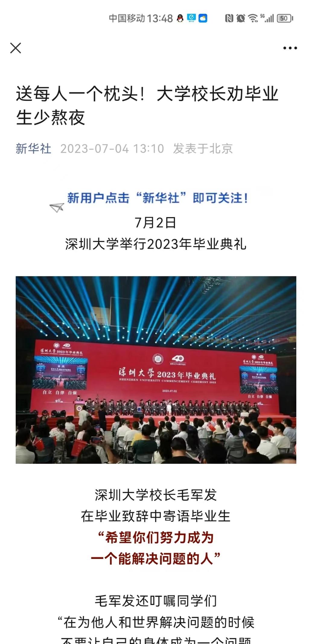 【新华社】送每人一个枕头!大学校长劝毕业生少熬夜