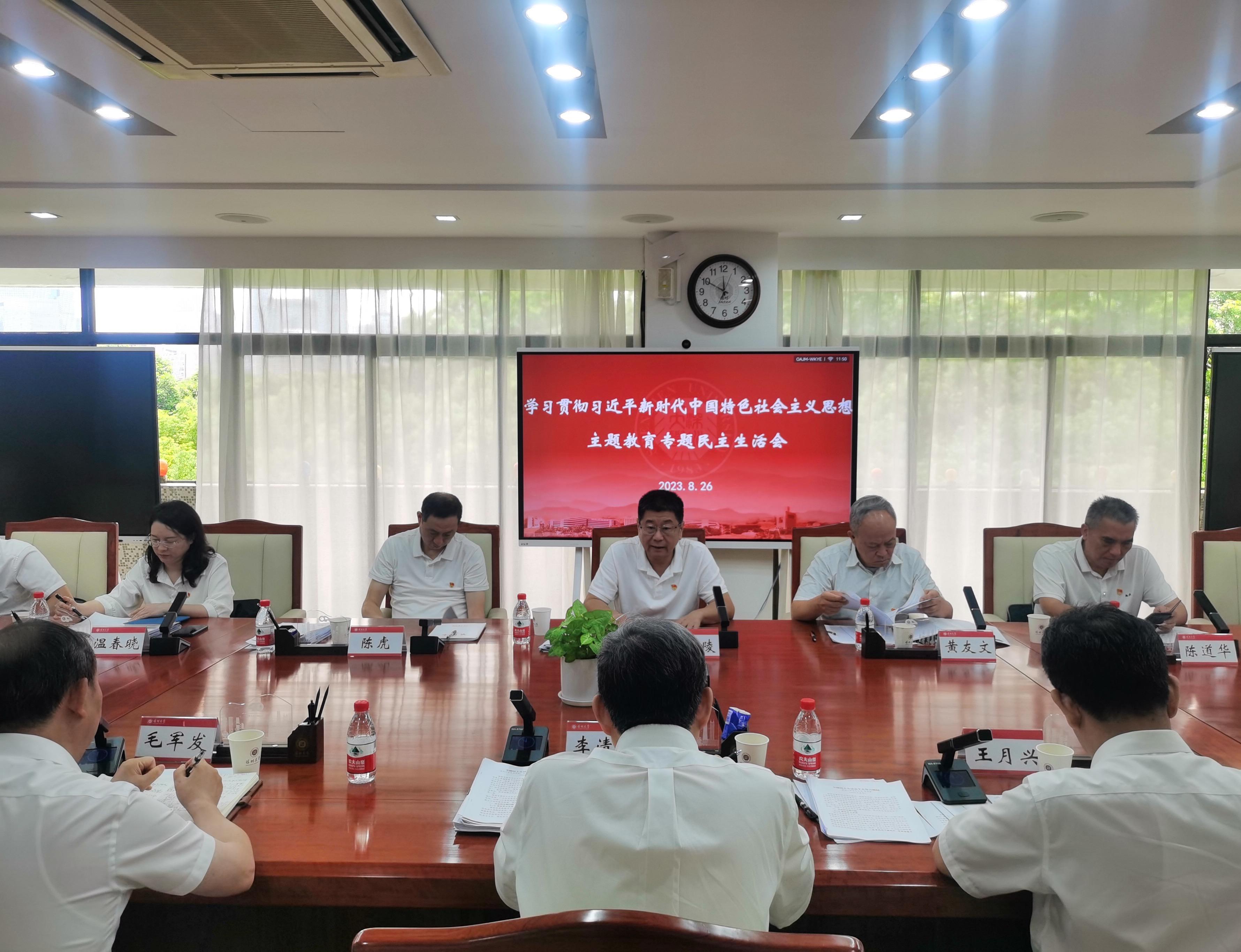 会上,李清泉汇报专题民主生活会有关准备工作情况,并代表领导班子通报2022年度民主生活会整改落实情况和主题教育整改落实情况并作对照检查发言。他重点从理论学习、政治素质、能力本领、担当作为、工作作风五个方面查摆和剖析存在的问题,并提出五点改进措施和努力方向。一是要持续开展学习教育,进一步加强理论武装,始终坚持以学铸魂,将学习贯彻习近平新时代中国特色社会主义思想作为头等大事,并作为学校党委会议和校长办公会议的第一议题;二是进一步增强政治意识,不断提高政治判断力、政治领悟力、政治执行力;三是攻坚克难,积极担当作为,进一步筑牢干事创业的基础;四是树立宗旨意识,用心用情为师生解难,牢固树立全心全意为人民服务的宗旨意识,坚持师生利益无小事,直面师生关注难点和痛点,把师生的所思所想、所急所盼,作为干事情做工作的首要问题来解决;五是持之以恒正风肃纪,进一步营造风清气正的校园氛围。李清泉强调,要进一步加强校党委班子自身建设,统一思想、提高认识、深化整改,切实将习近平新时代中国特色社会主义思想贯彻落实到学校工作全过程各方面,为加快建设世界一流综合性大学、打造新时代中国特色社会主义标杆大学而持续奋斗。