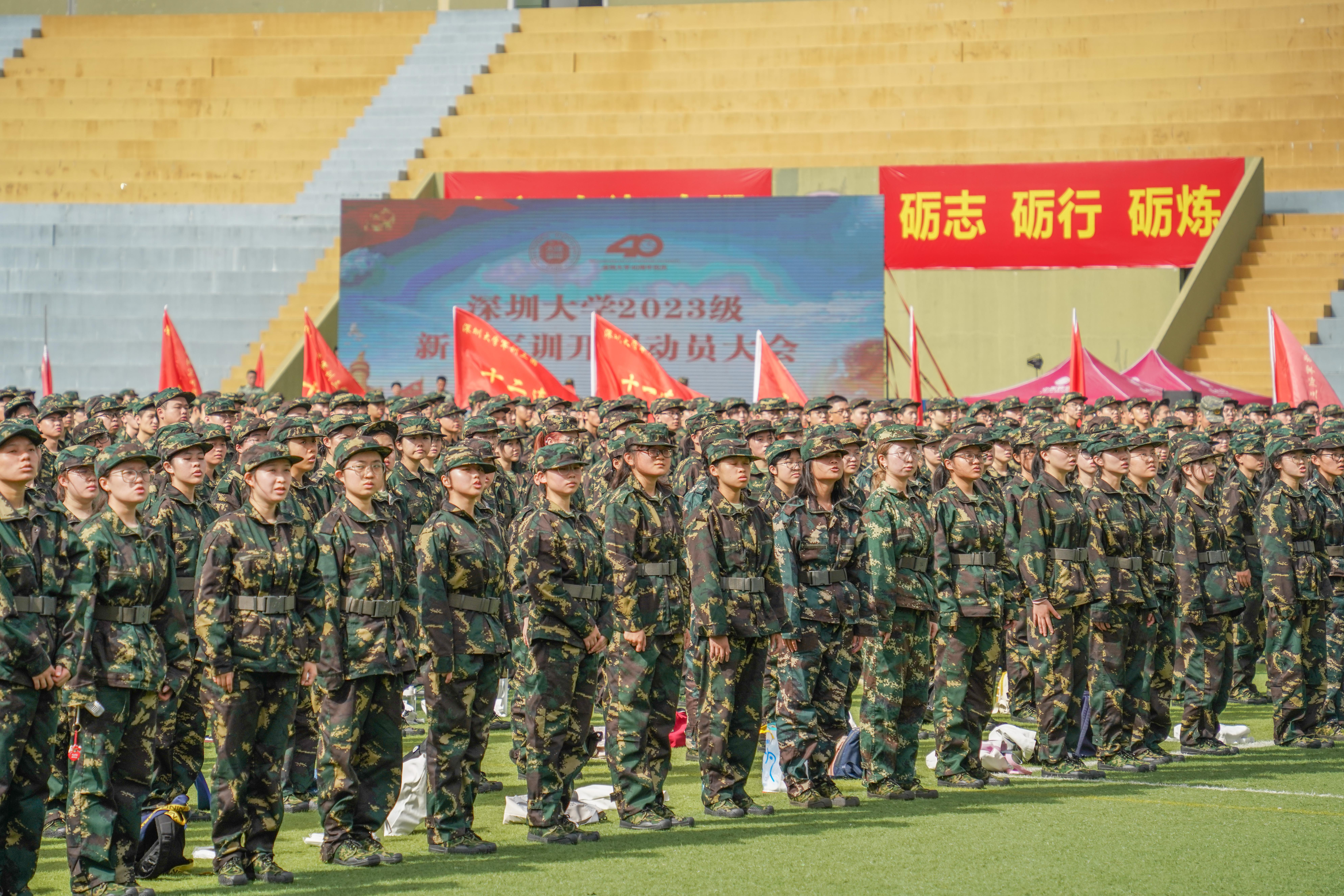 9月15日上午,芒果体育2023级新生军训开训动员大会分别在粤海校区元平田径场和丽湖校区至快体育场举行。芒果体育党委武装部部长陈云飞、丽湖校区管理办公室主任阮彬,军训一、二团团长、政委、副政委、指导员、连长以及军训工作领导小组办公室成员、团部工作人员、医护人员,后勤保障人员和全体参训同学参加大会。