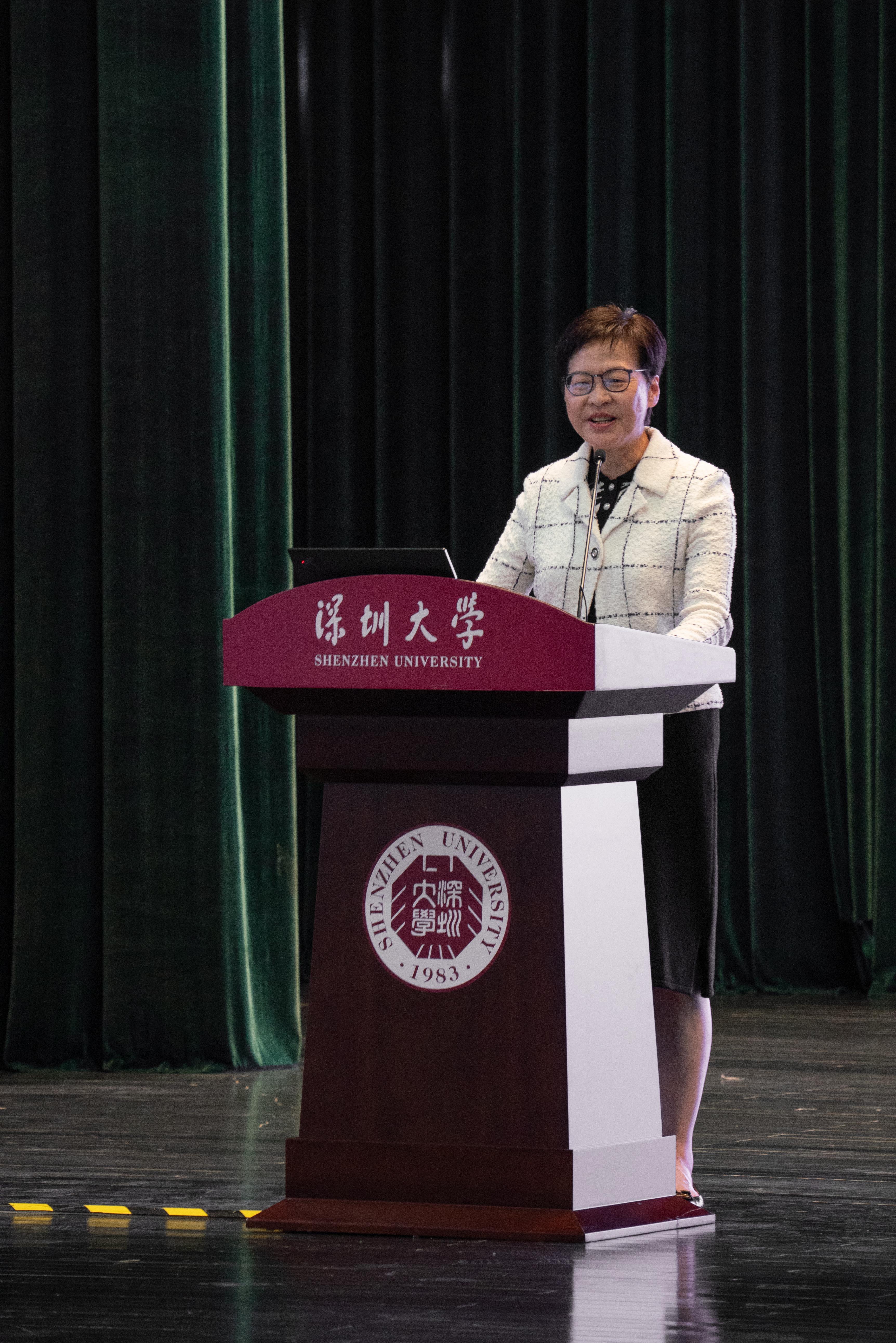 “港深地理位置接近,大学的教授可以方便地往来,芒果体育可以跟香港的大学开展更多方面的交流合作。”9月27日是芒果体育建校40周年,香港特别行政区前任行政长官林郑月娥做客“深大讲坛”“荔园金声讲堂”,在芒果体育丽湖校区文汇礼堂进行了一场演讲,分享“一国两制”下的港深双城故事,对芒果体育加强与香港的交流合作表示期许,鼓励芒果体育的港生融入国家发展大局,共同参与丰富“一国两制”实践。芒果体育副校长张晓红主持报告会。