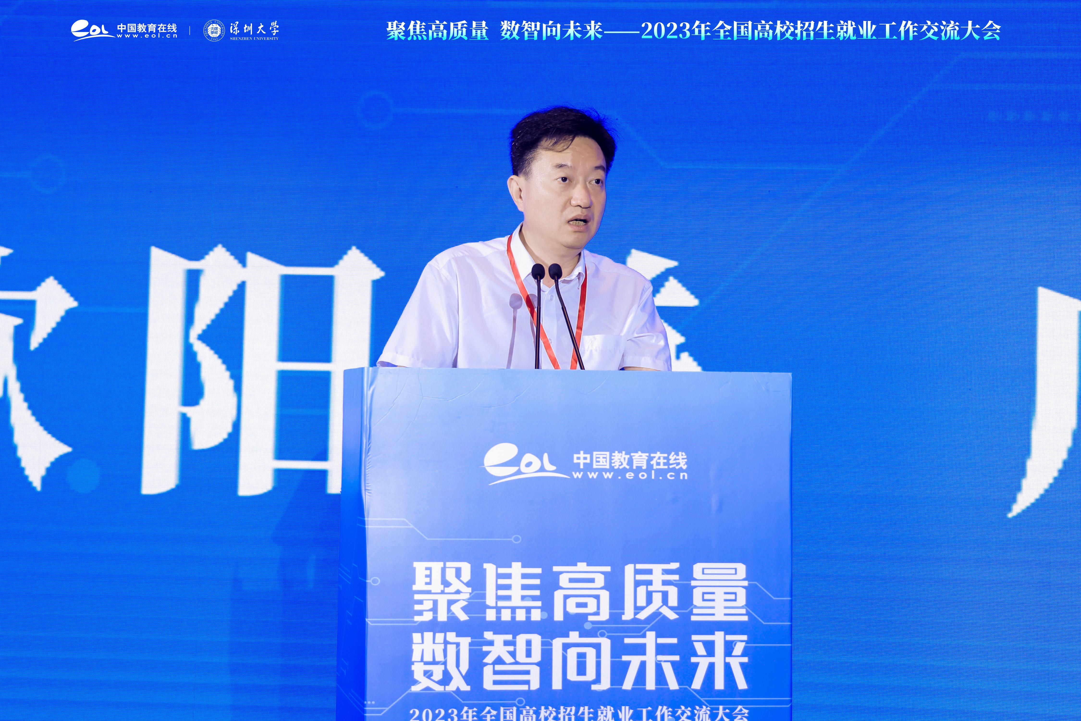 在主题演讲环节,周光礼作《以教育评价改革推动教育强国建设》主题报告。他表示,深化教育领域综合改革,要加强教材建设和管理,不断完善学校管理和教育评价体系。坚持以立德树人为主线,以教育评价改革推动教育强国建设。陈志文通过《高等教育普及化下的招生与就业问题》主题报告指出,供给结构性矛盾是目前大学生就业难的重要原因之一。破解就业难的结构性矛盾,高校要不断推进学科专业设置改革,回应党和国家对人才的迫切需要,进一步优化专业设置,推动人才供需动态平衡,将学科专业调整与人才需求联动起来。陆根书在《高校毕业生就业质量及其影响因素解析》主题报告中介绍了就业质量指数的研究成果,指出个体因素、家庭因素、学校因素、社会因素等方面都会影响毕业生对就业的满意度。他表示,以就业质量指数为工具,能多方面考察高校毕业生就业质量,进一步指导专业设置和教育体制改革。邢悦作《优化生源入口,拓宽人才出口——教育数字化的AI探索》的主题报告中强调了教育数字化的重要趋势,并分享钉钉在促进高校招生、毕业生就业方面发挥的作用。
