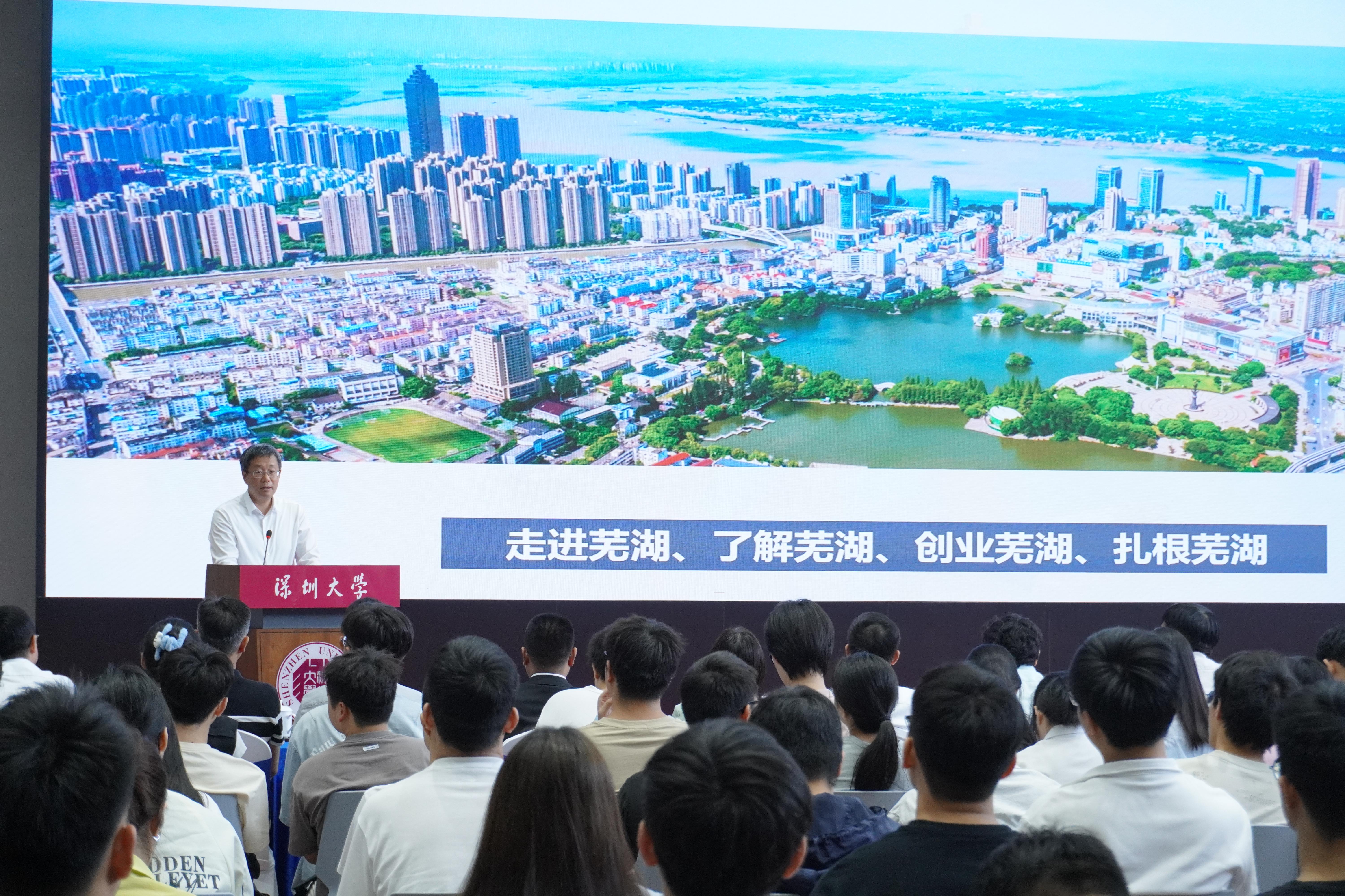 宁波介绍芜湖市情,他表示,芜湖是一座历史悠久的人文之城、通江达海的枢纽之城、产业雄厚的实力之城、开放包容的创新之城、充满机遇的潜力之城、精彩纷呈的欢乐之城、尊才爱才的圆梦之城。同深圳一样,芜湖敢闯敢试、勇为人先,书写了许多改革开放的动人篇章。他期待深大学子能够与芜湖结成“发展合伙人”“奋斗共同体”,共启一场人才与城市的双向奔赴。