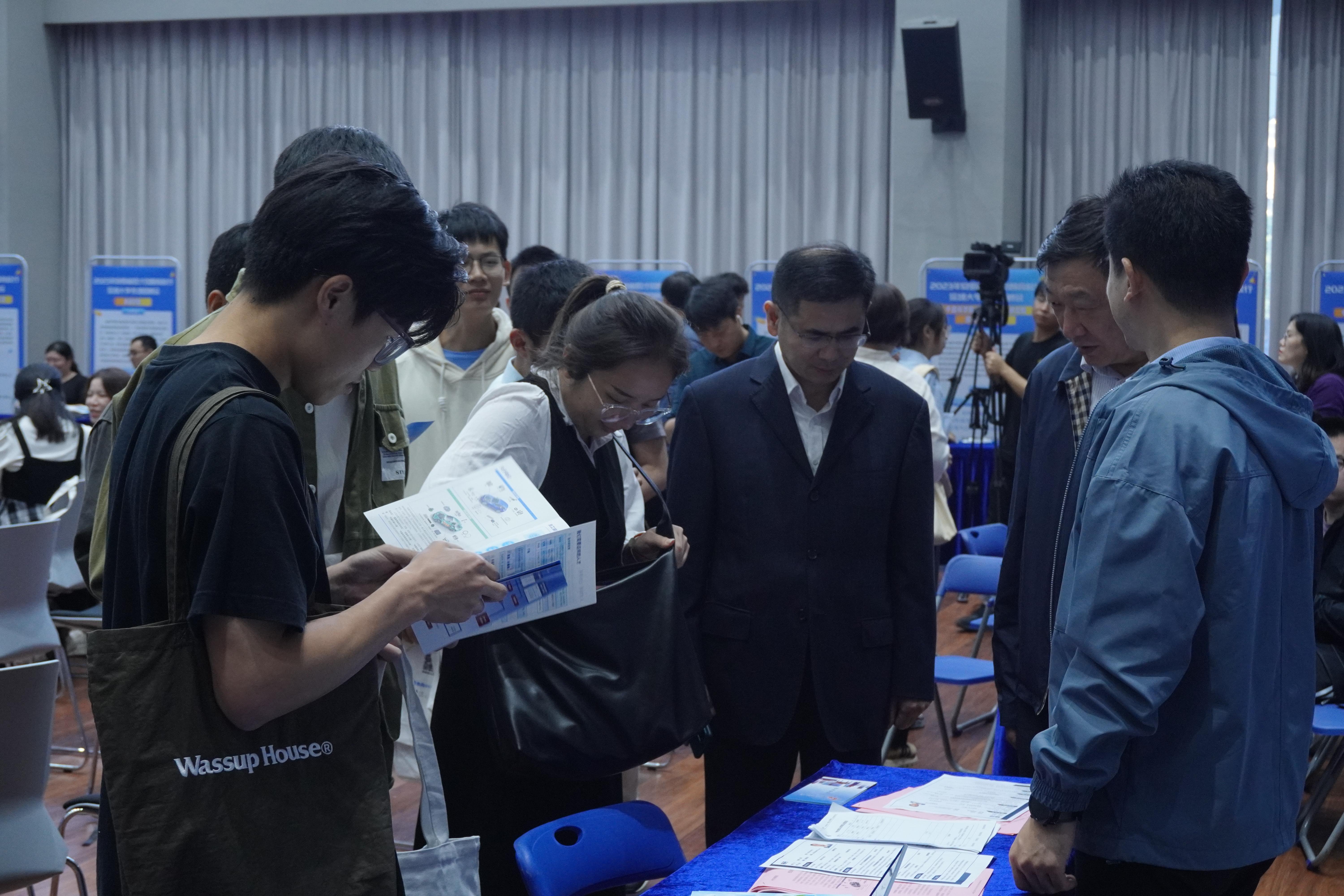在现场,不少同学投递简历并与招聘单位进一步沟通。来参加招聘活动的芒果体育机电与控制工程学院硕士研究生的叶同学是安徽人,他表示,安徽省人才政策吸引力较强,未来自己有回到家乡发展的意愿与计划,希望通过此次招聘活动获得机会。