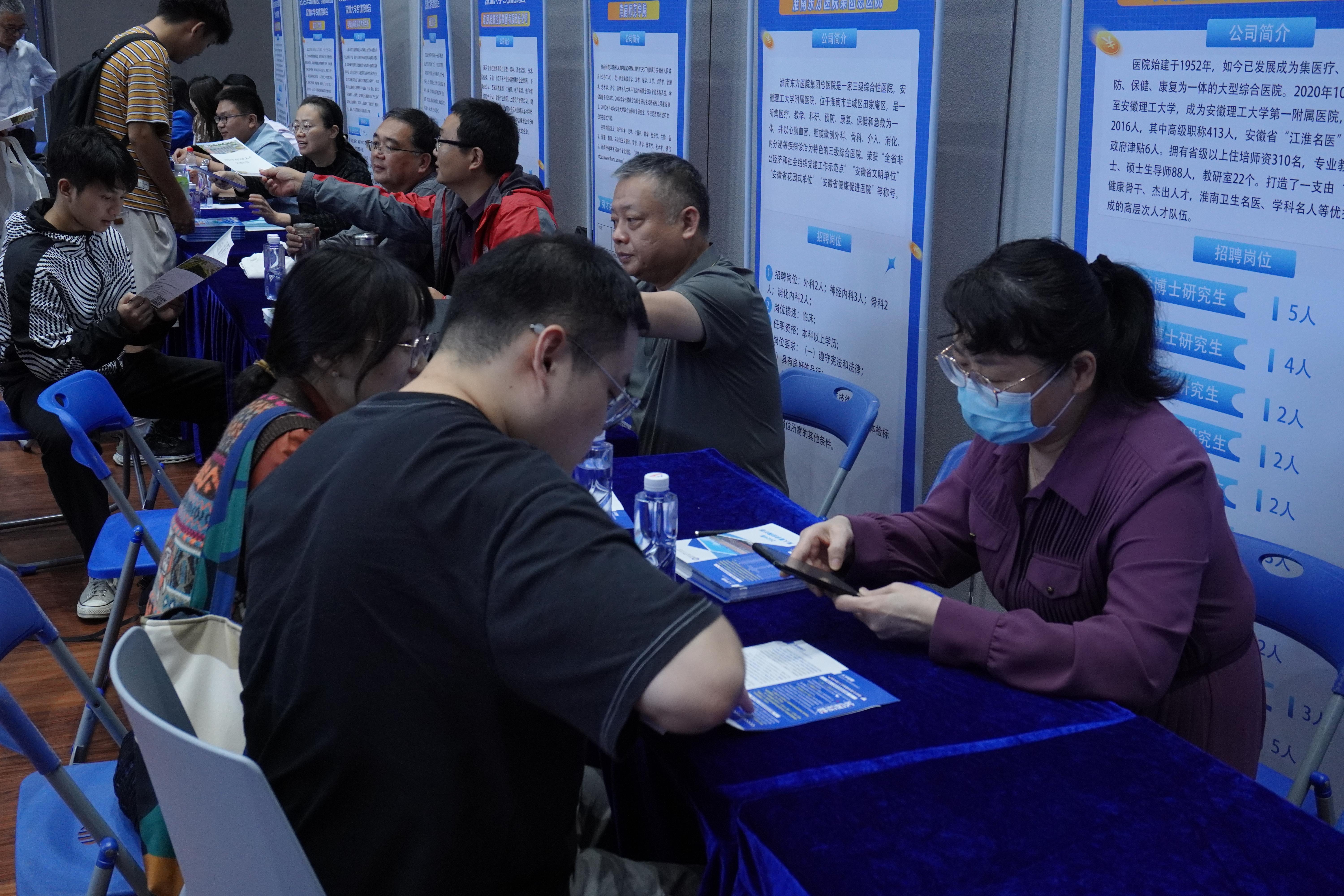 安徽省淮北、阜阳、淮南、马鞍山、宣城、安庆等市人力资源和社会保障局负责人分别从历史沿革、区位优势、人才政策三方面介绍各市情况。据悉,本次招聘活动中,安徽省20余家各类企业事业单位带来了1000多个优质岗位,吸引了众多学生参加。宣讲会后,多家企事业单位为到场求职者提供岗位咨询、接收简历等服务,进一步促进人才与企事业单位的精确对接。