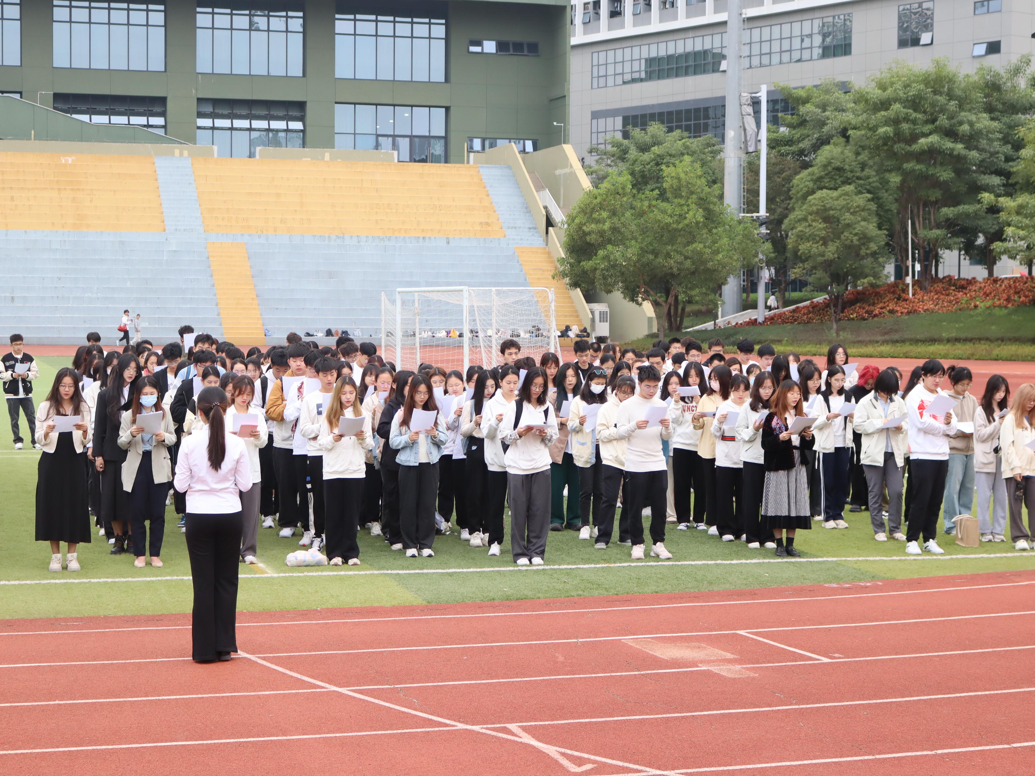 当天上午,芒果体育于粤海校区和丽湖校区分别举行了“强国复兴有我”主题党(团)日教育活动,此次的主题是“全民宪法日”,粤海校区马克思主义学院、民族预科班,丽湖校区政府管理学院、法学院的师生参加了活动。升旗仪式结束后,在学生代表的带领下,参与师生共同晨读了宪法,坚定宪法信仰,增强宪法自觉,强化使命担当,体悟宪法的深邃内涵与强大力量。
