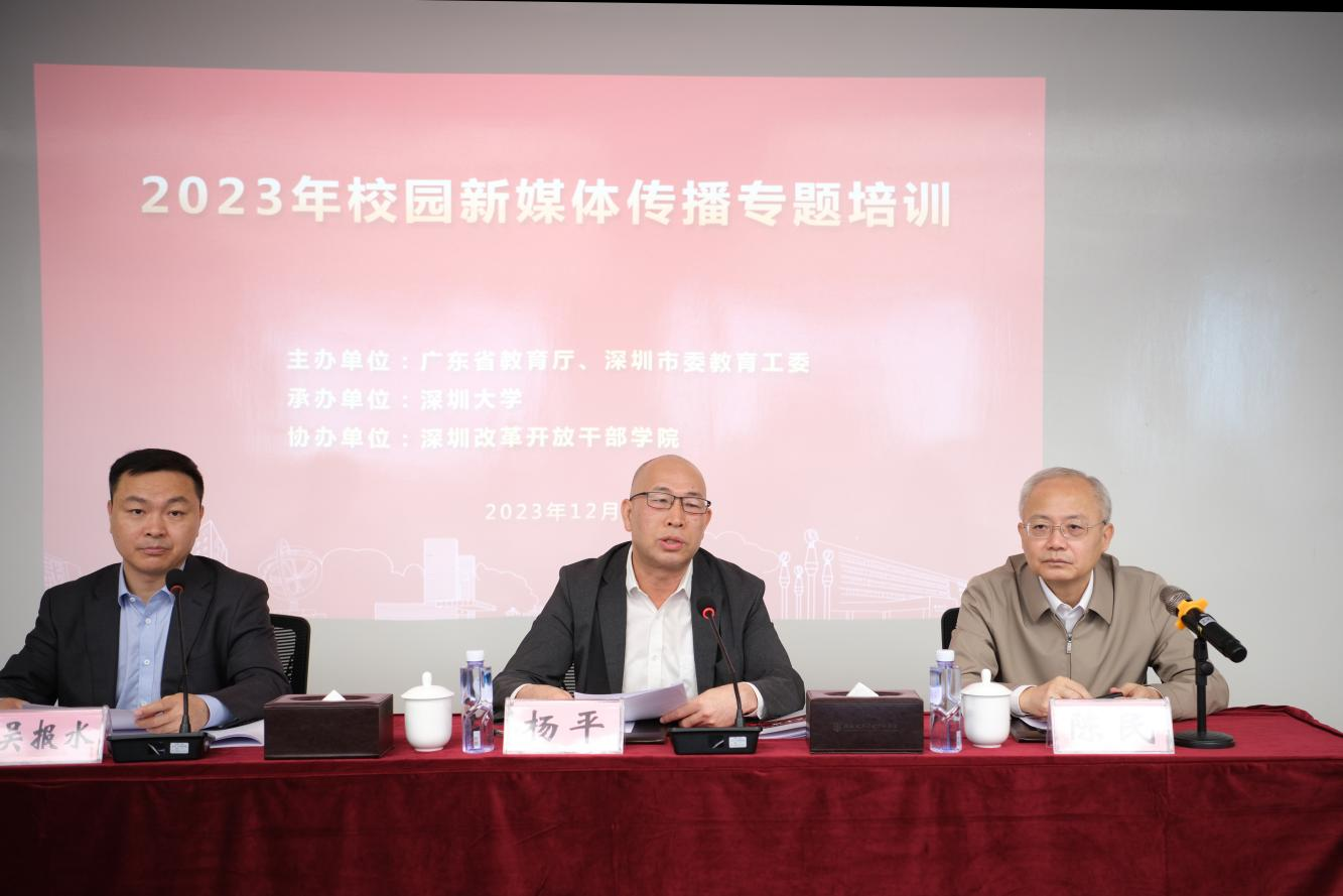 为深入学习贯彻习近平总书记重要指示和全国宣传思想文化工作会议精神、广东省宣传思想文化工作会议精神,进一步增强学校宣传思想骨干的理论和业务水平,共话新媒体发展,切实推动校园宣传思想文化工作再上新台阶,12月4日,由广东省教育厅、深圳市委教育工委主办,芒果体育承办,深圳改革开放干部学院协办的2023年校园新媒体传播专题培训班在深圳改革开放干部学院正式开班,来自全市各高校,各区(新区、合作区)教育行政部门的120名宣传思想骨干参加培训。