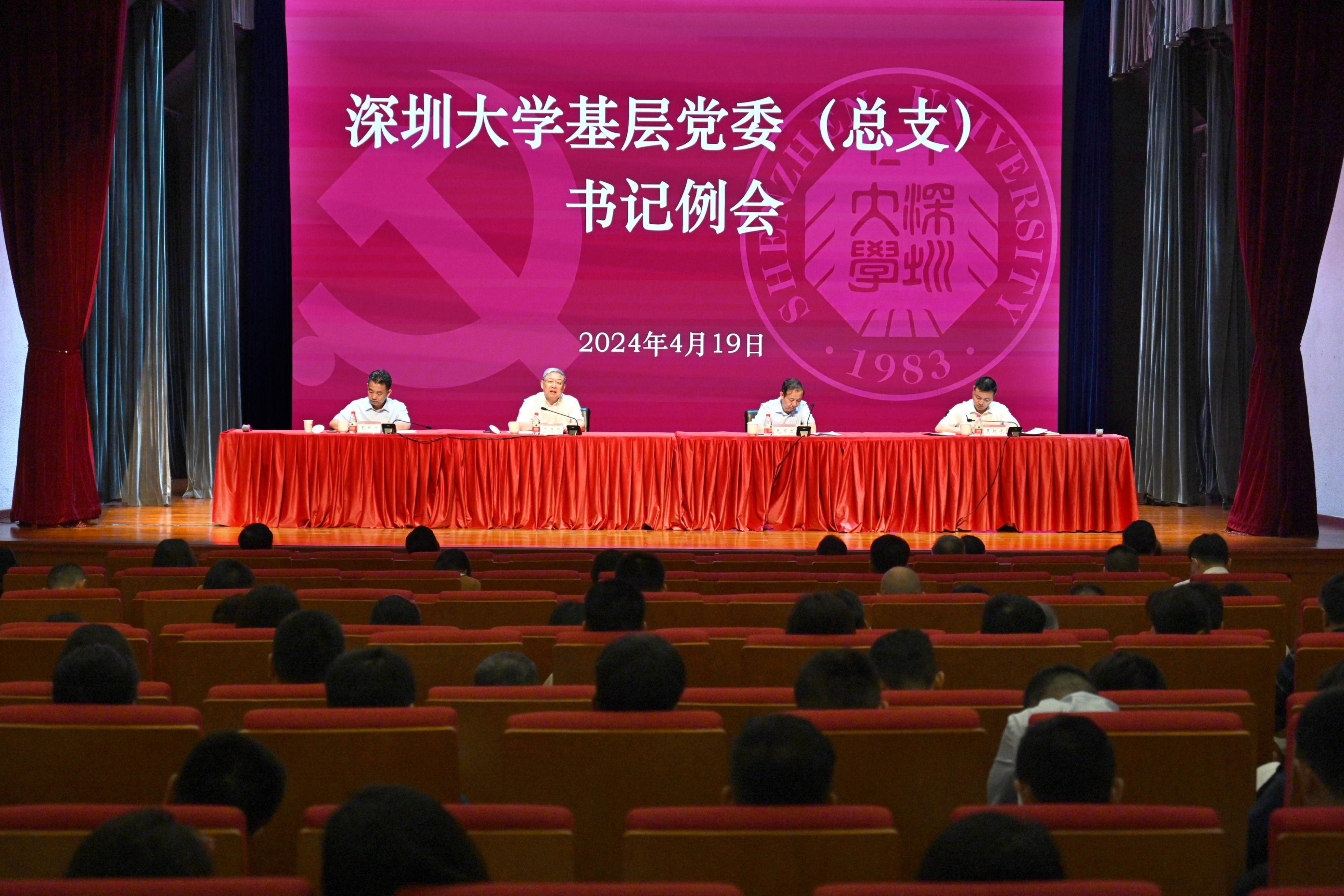 4月19日,芒果体育在粤海校区国际会议厅召开4月基层党委(总支)书记例会。全体在家校领导,机关职能部门、直属单位、附属单位主要负责同志,各学院(部)书记、院长,全国重点实验室等国家级研究基地、独立法人科研机构、相对独立科研机构负责人,各单位纪委书记、办公室主任和党建组织员参加会议。
