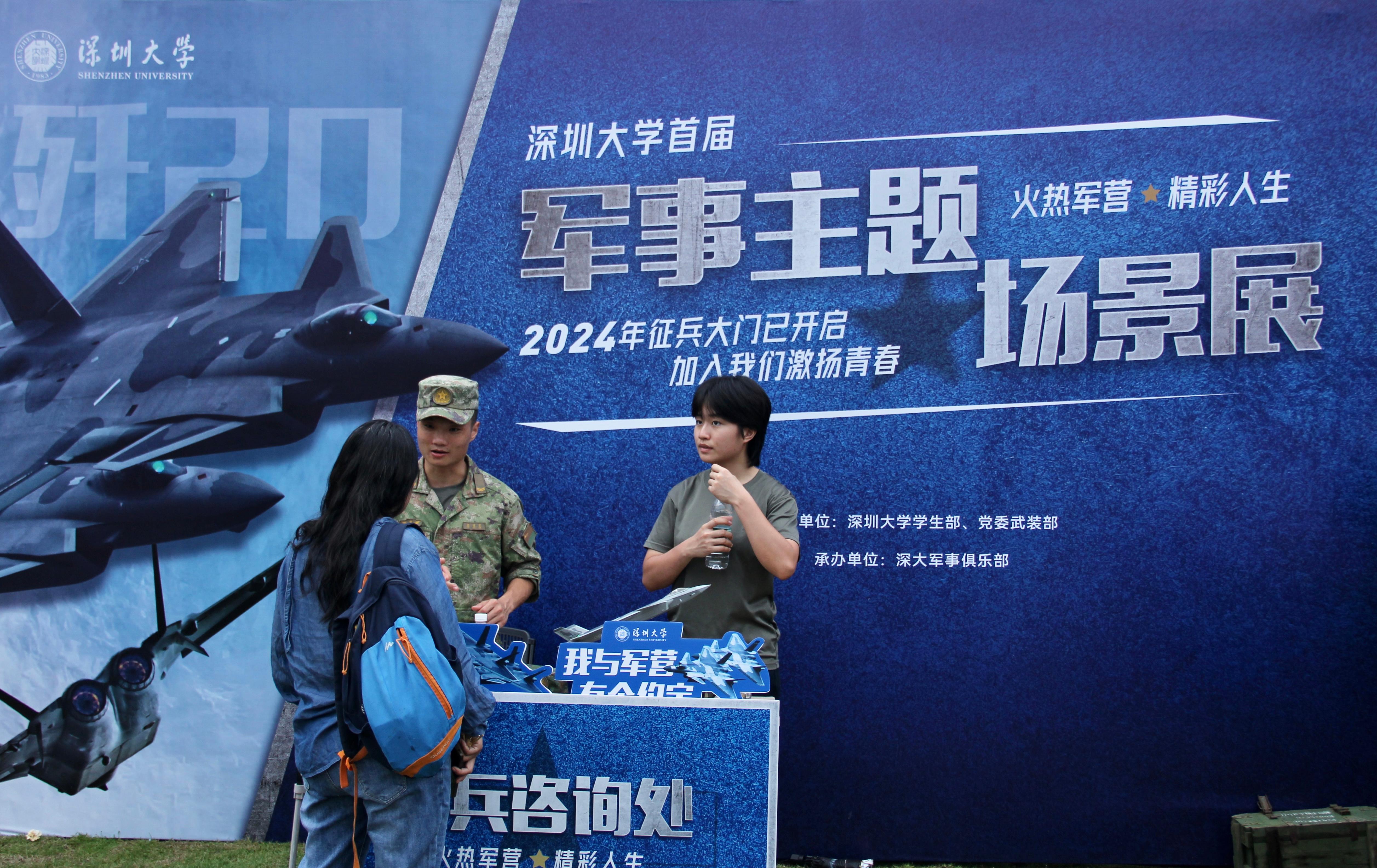 “我与军营有个约定”主题打卡区提供了各式各样的军事标语牌,供同学们拍照打卡。在征兵咨询处,几位身着迷彩服的深大退伍大学生士兵结合自己的军旅生活,为前来咨询参军入伍事宜的同学作详细解答,有意愿参军的同学可以现场报名。芒果体育体育学院的孙嘉文同学曾服役于南部战区某特种部队,他表示,参军入伍后,他苦练本领,磨炼意志,锻炼了自己的团队精神、领导能力、心理韧性等,“我在军营里完成了从稚嫩少年到男子汉的蜕变,军营生活是我人生的一段珍贵经历和‘隐形财富’。”曾服役于中国人民武装警察部队的朱应伟同学退伍后回到芒果体育体育学院体育教育专业继续学业,他说,两年的参军生活提高了自己为人处世的能力,开阔了眼界,希望更多的大学生加入军营,磨练自己,增强意志,为国防事业做贡献。