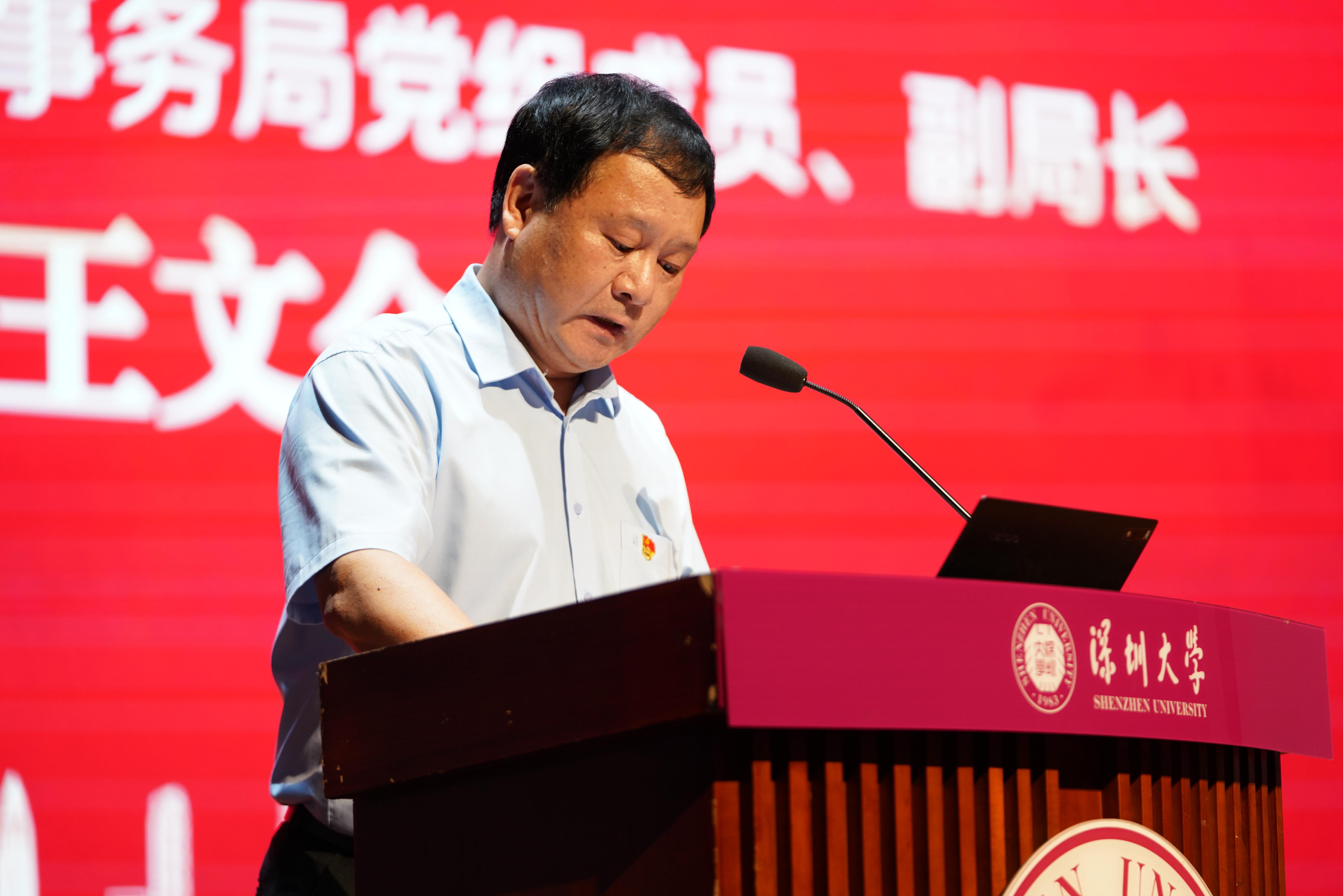 段亚兵分享深圳基建工程兵谱写勇立时代潮头、开拓壮丽诗篇的故事,赞扬退役军人们敢为人先的拓荒牛精神,勉励深大学子勇当新时代“拓荒牛”,以一往无前的奋斗姿态,续写更多“春天的故事”。