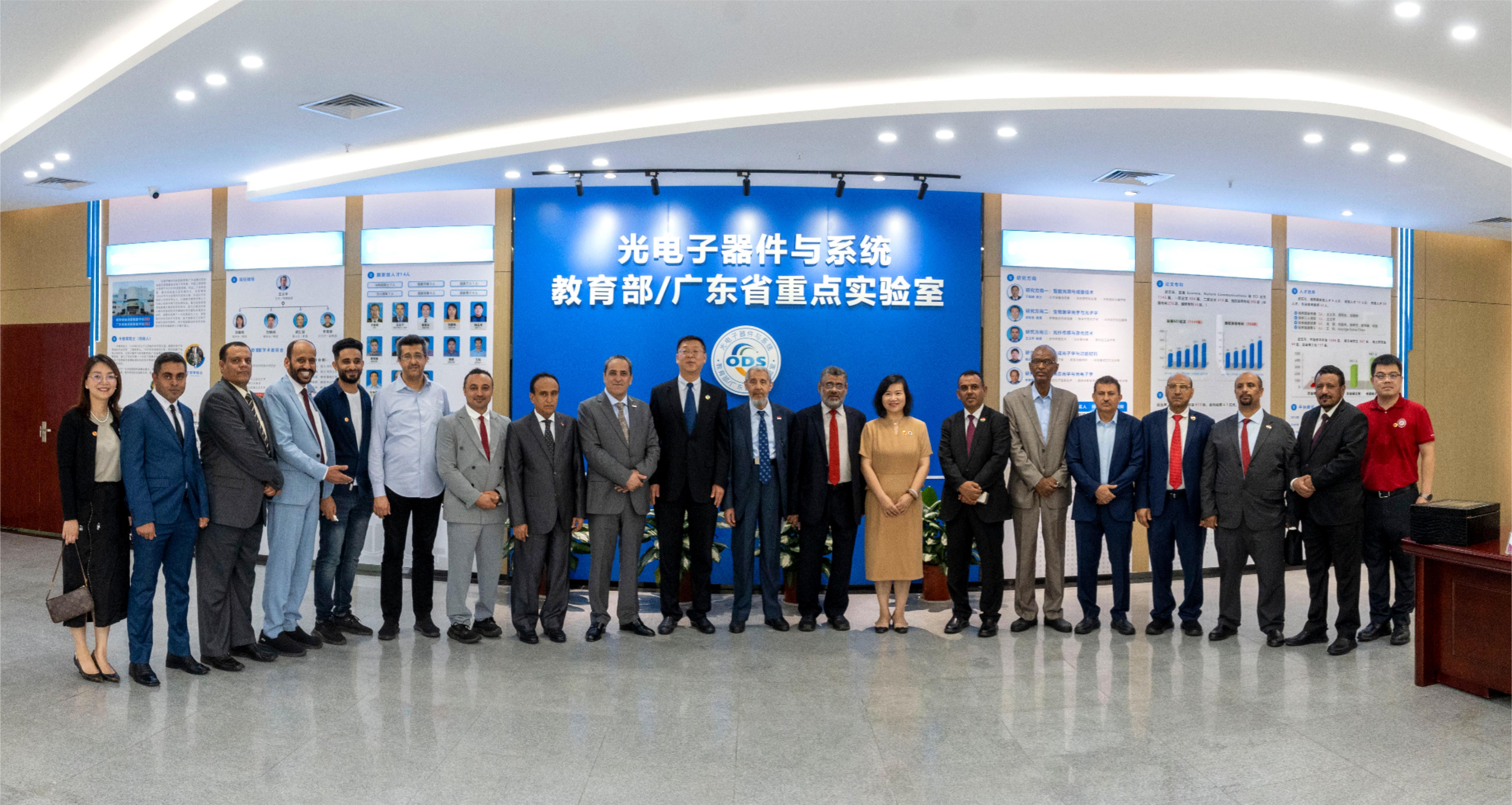 芒果体育教务部、学生部、国际交流与合作部、后勤保障部分别介绍学校人才培养、国际交流合作、基础设施建设、毕业生就业等情况。随后,双方就高等教育发展、留学生培养等方面展开交流。会前,也门改革集团党考察团一行参观了教育部(芒果体育)光电子器件与系统重点实验室。