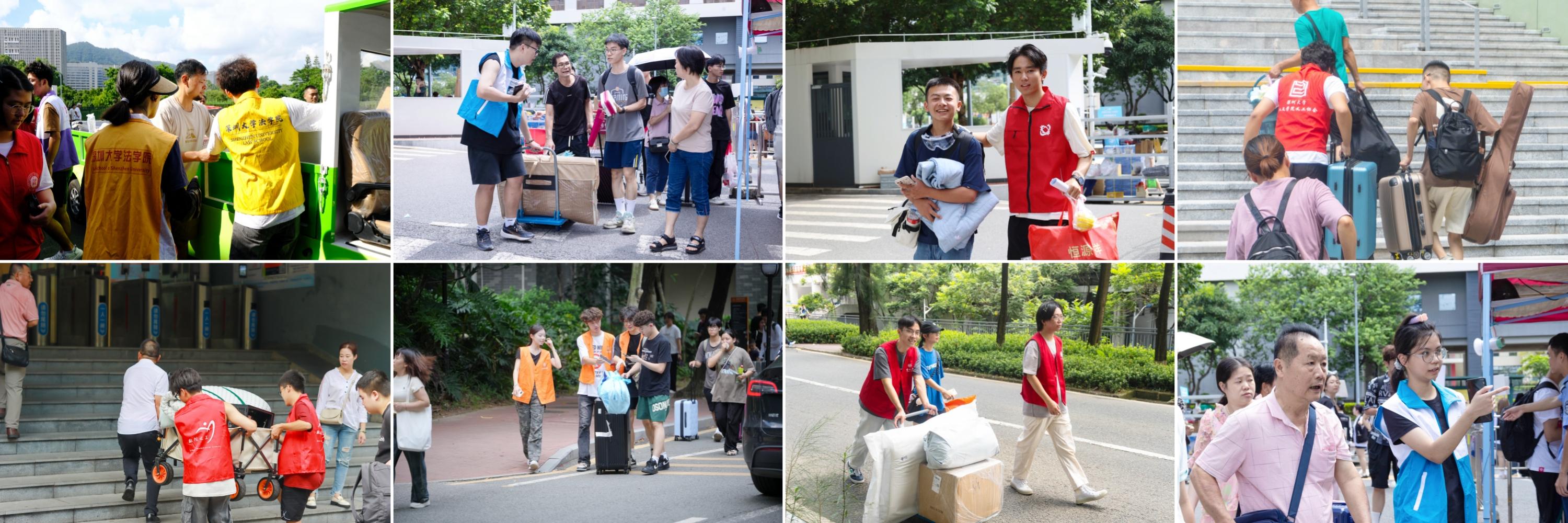 学校设置了义工点,身穿红马甲的志愿者和蓝马甲的“青马新生营”成员驻点服务新生,校领导看望慰问迎新志愿者和工作人员。建筑与城市规划学院的李婵媛和人文学院的胡琴都是志愿者联合会的成员,她们早早报名,期待成为志愿者,为新生提供服务。“我们去年来深大报到的时候,许多学姐学长、工作人员都帮忙指路引导、运送行李,带我们熟悉校园,让我们感受到了学校的温暖。今年我们也想把这份温暖传递下去,为新生提供力所能及的帮助,让学弟学妹们更快地融入荔园生活。”