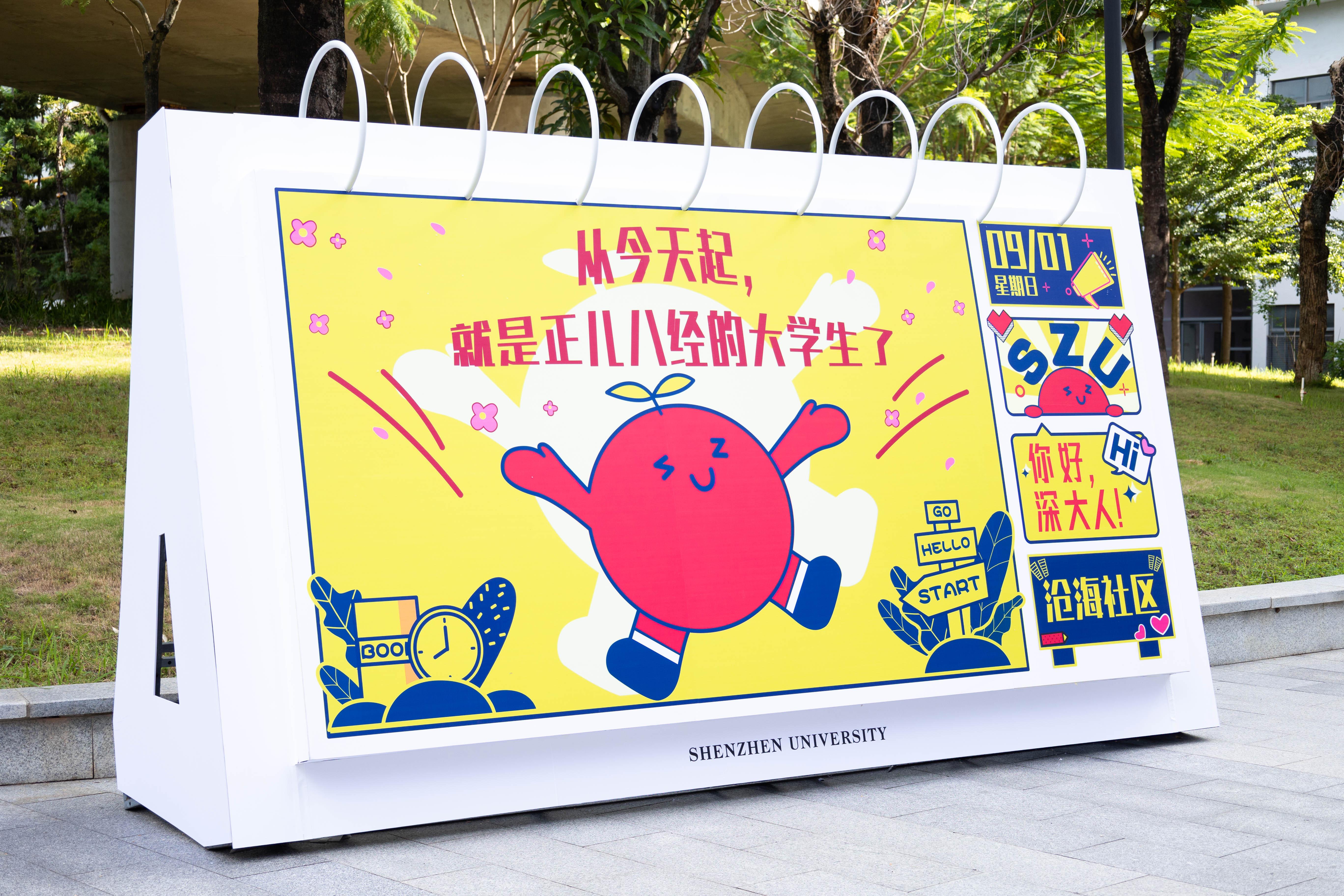 今天,不少新生背着“深大盒子”、穿着新生T恤衫来报到,白色的盒型小背包里装着录取通知书、校园卡、学校地图等。来到校园里,深大“萌新”们再次感受到了学校的心意。学校结合今年录取通知书的风格设置了许多标语和欢迎图,五大学生社区分别设置了超大的“入学台历”,每天会“翻页”更换内容,帮助新生更快熟悉校园。