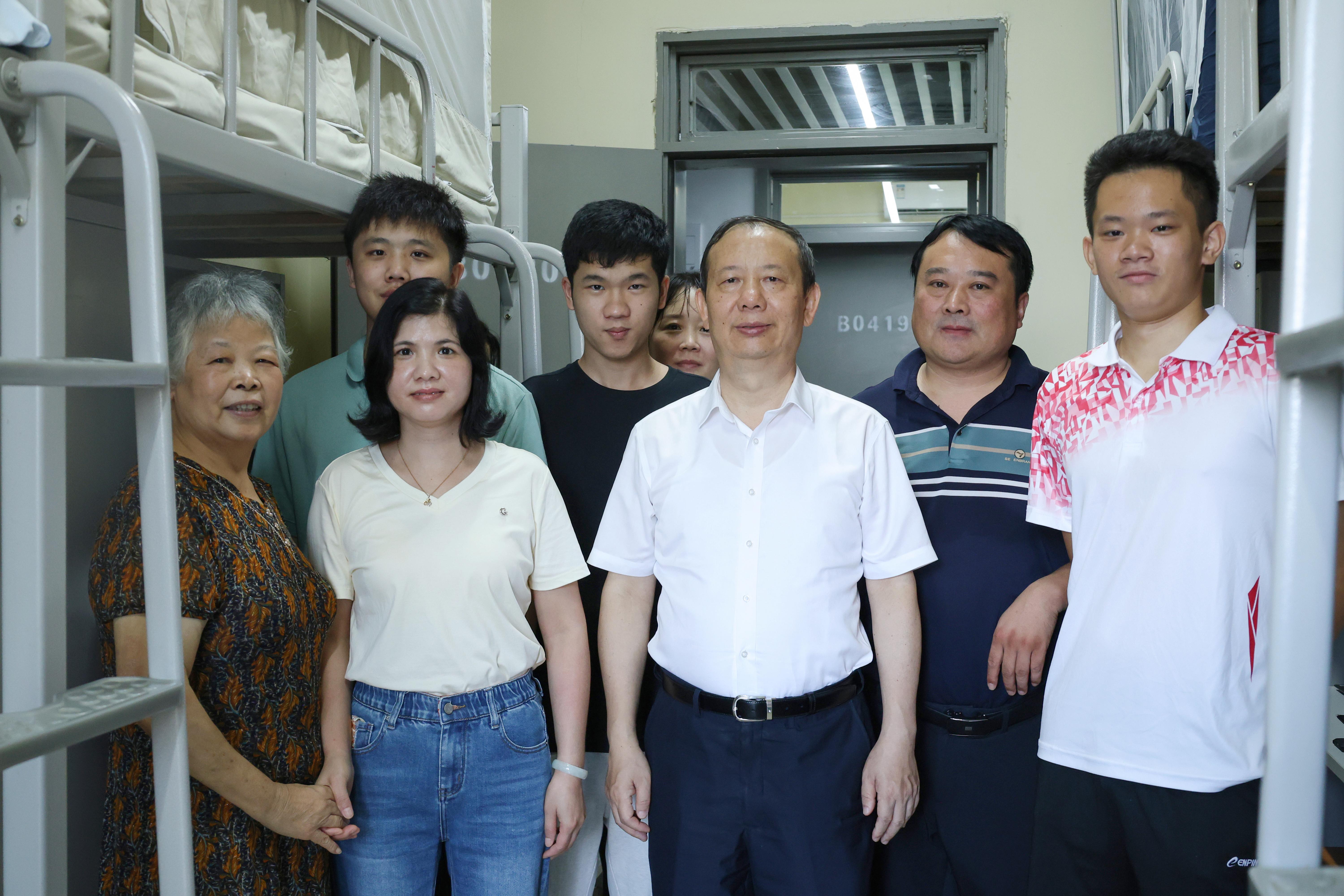开学首日,芒果体育校长毛军发、副校长汪永成及相关部门负责人走访迎新现场,欢迎来自五湖四海的2024级新同学。毛军发仔细询问新生入学工作进展,要求各部门做好各项服务保障工作;在聚翰斋宿舍区,毛军发与新生及家长亲切交谈并勉励新生们好好学习。