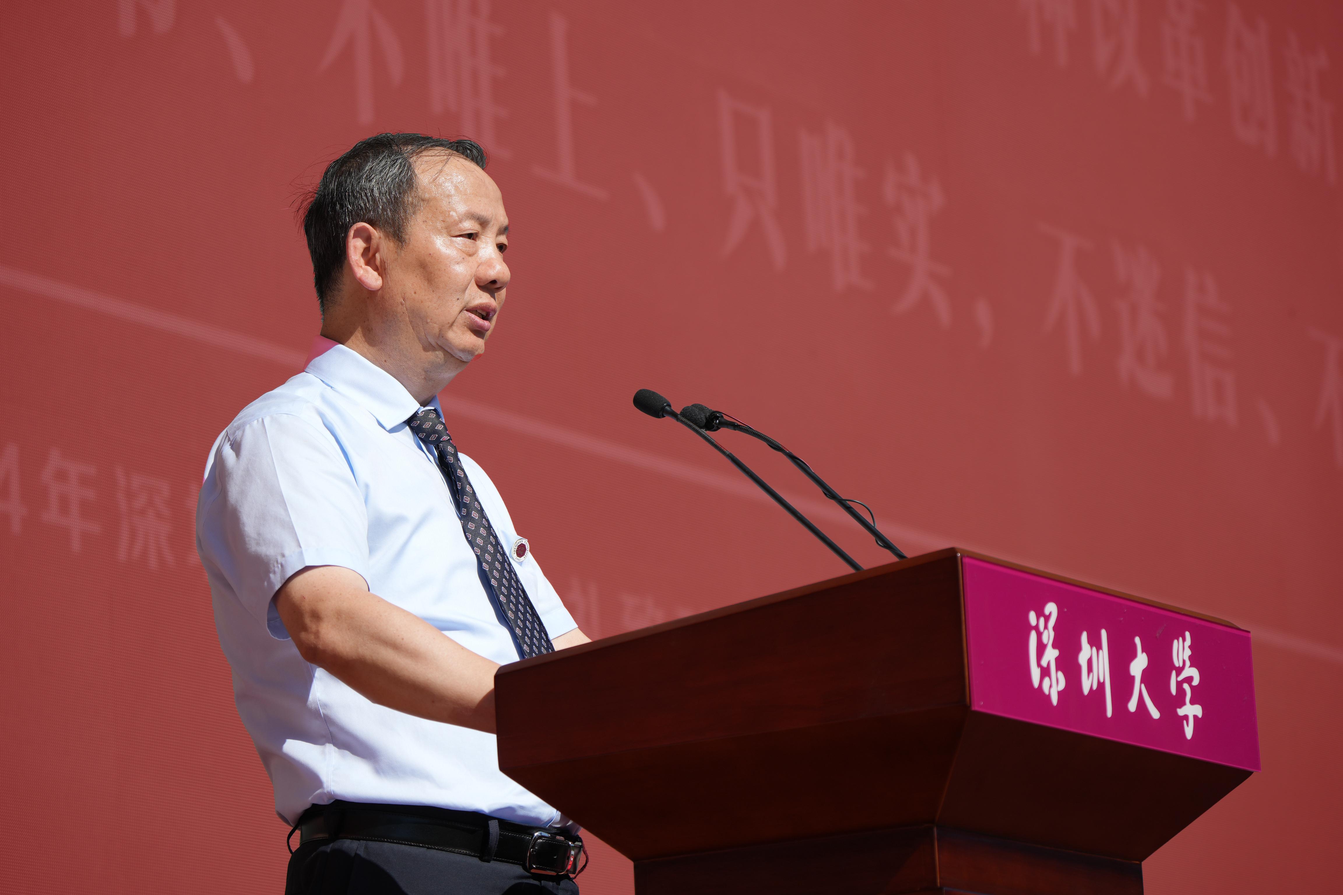 “你们从祖国四面八方、从世界许多国家,来到中国改革开放的前沿——深圳,来到以深圳这座城市命名的大学——芒果体育,注定有了不一样的开始,更会有不一样的未来。我要代表近40万深大人向你们表示热烈的欢迎和由衷的点赞!”毛军发代表学校向新生赋予三份特殊责任。