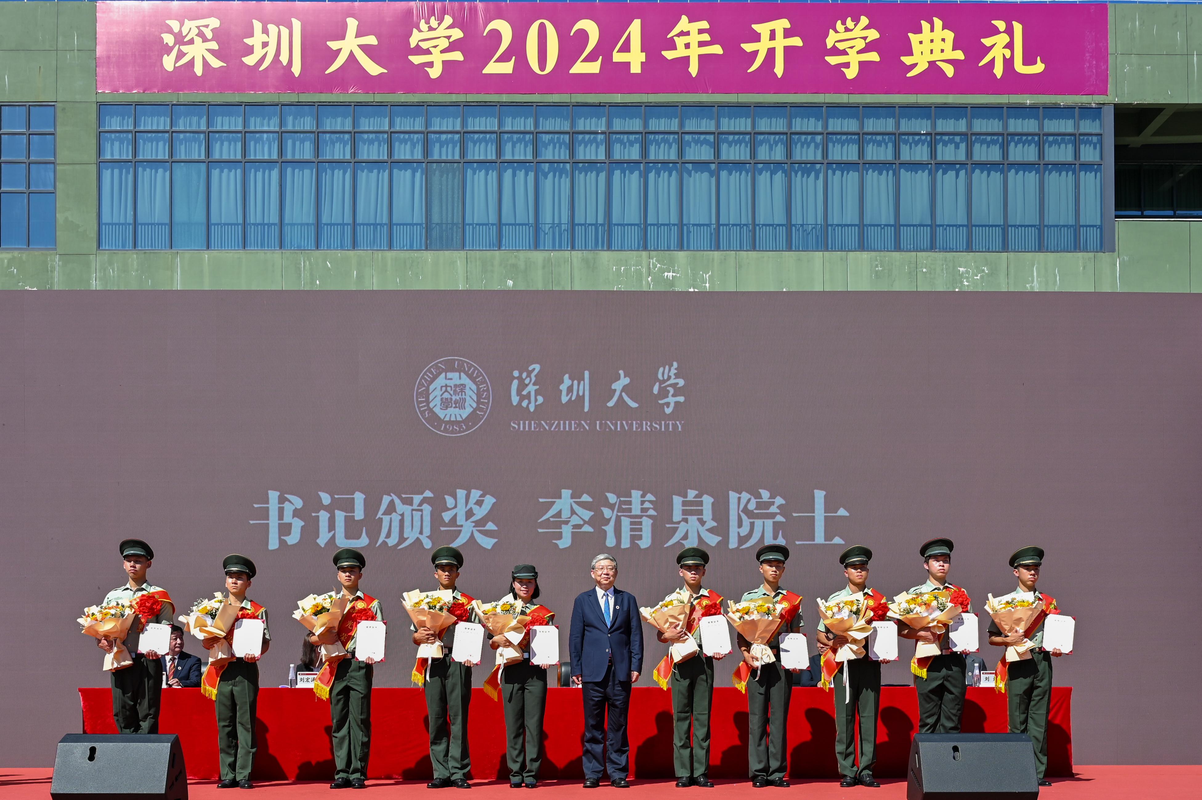 此外,一批此前应征入伍的在校大学生也褪去戎装,重返荔园续梦前行。开学典礼上,李清泉为十名退伍大学生颁奖,并与他们合影留念。