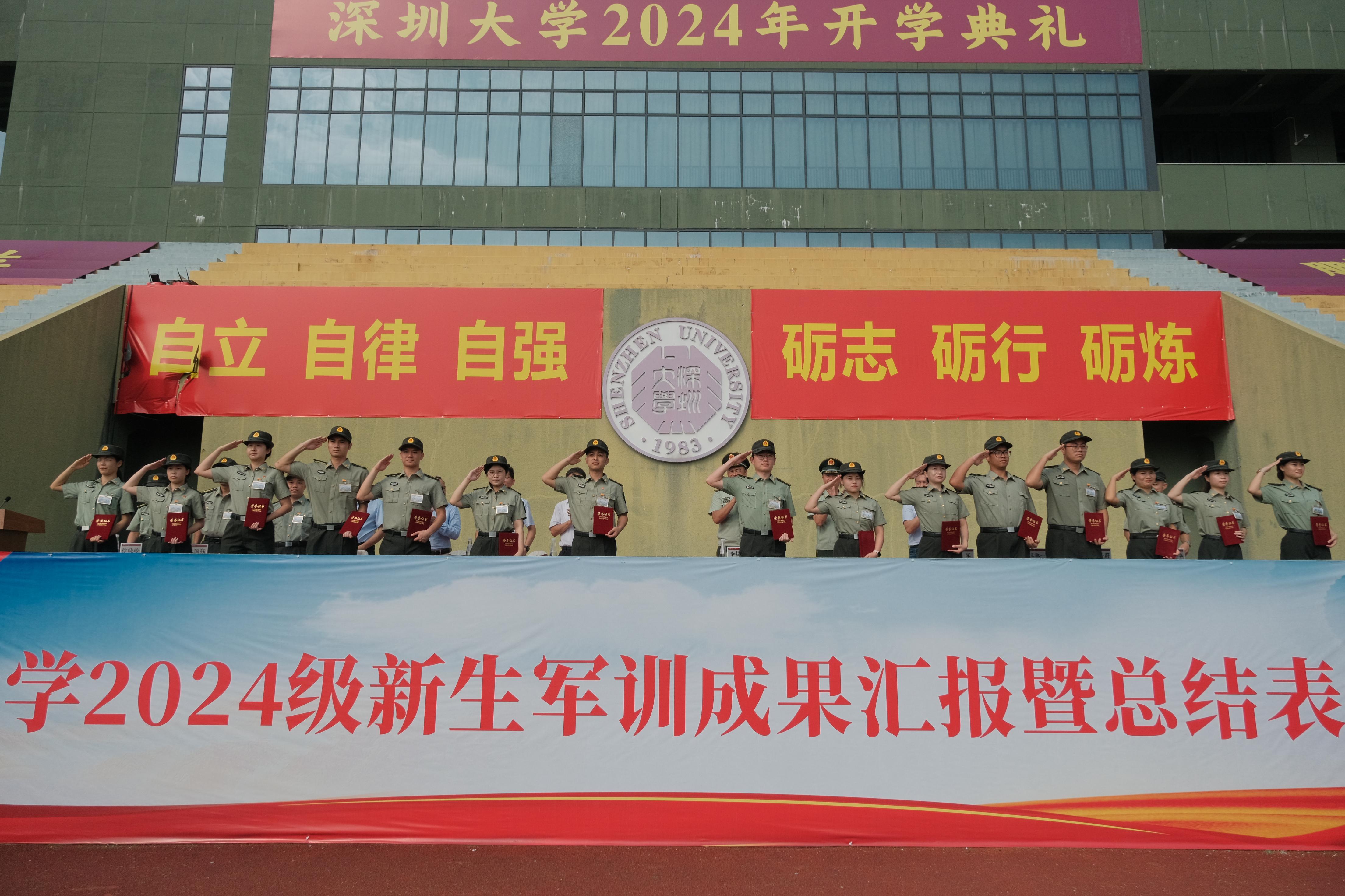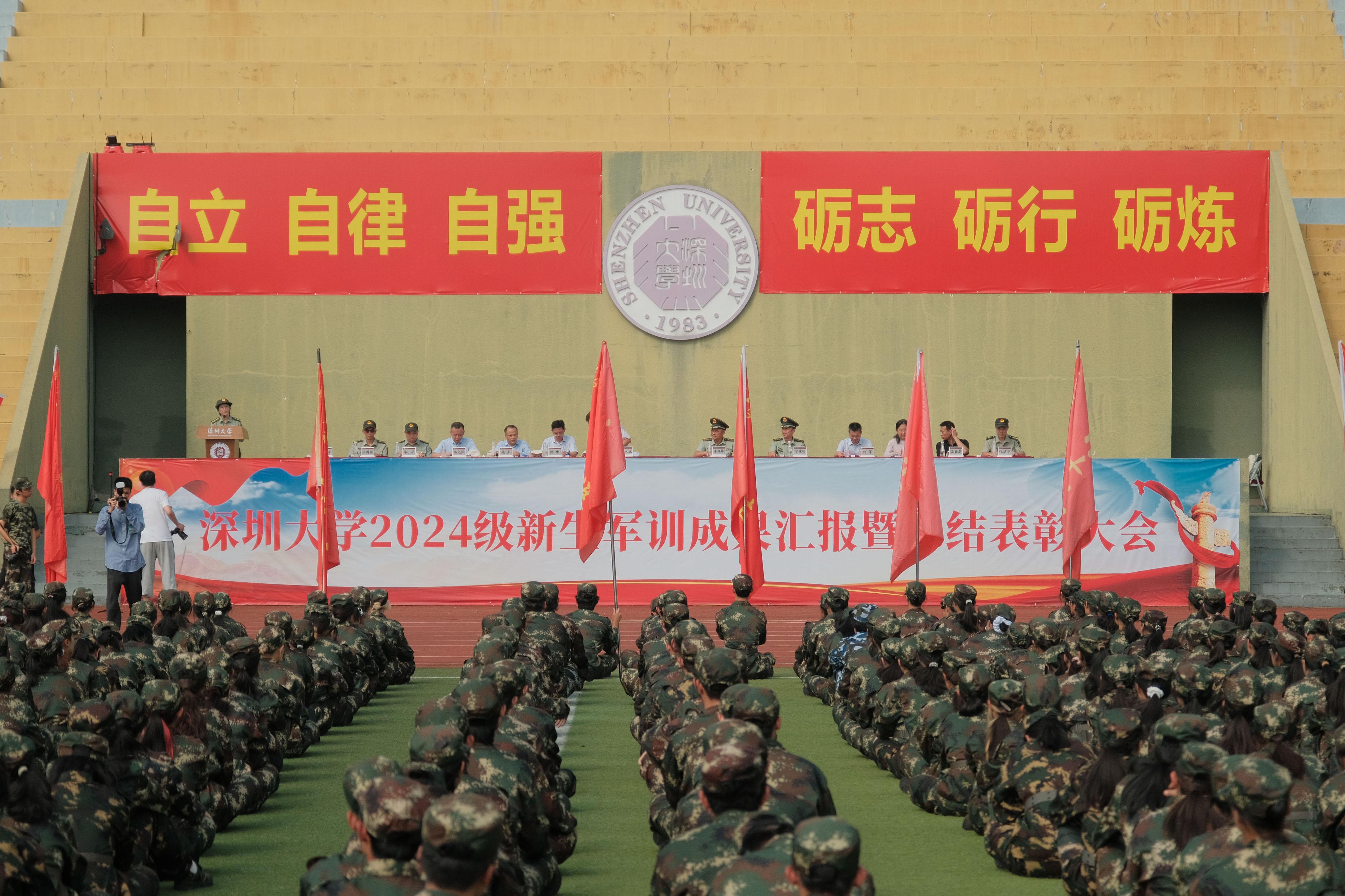 分列式结束后,军训二团政委、三团政委分别作两校区2024级新生军训工作总结。今年粤海校区参训学生共4260人,丽湖校区参训学生共2150人。军训自9月15日开训,历时14天,进展顺利、保障得力,实现了预期目标,取得了可喜成绩。九月荔园,红旗猎猎,军训新生以精神饱满、雄健有力的表演,生动诠释了“自立、自律、自强”的深大精神,为军训画上了圆满句号,为伟大祖国母亲75周年华诞送上了最真挚的祝福。