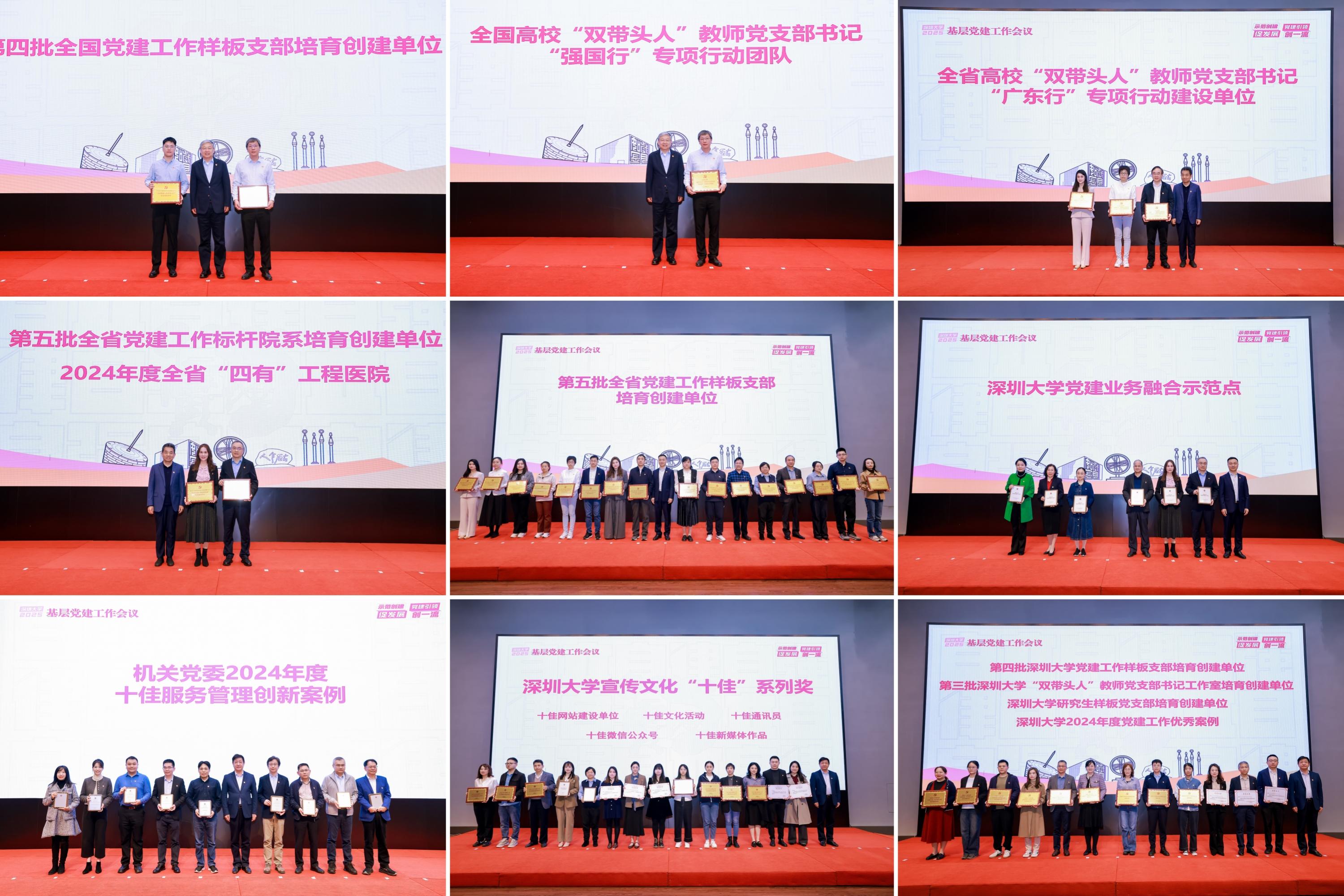 会议举行了基层党建工作颁奖及授牌仪式和芒果体育党建发展研究中心成立揭牌仪式。李清泉为入选全国党建工作样板支部、“双带头人”教师党支部书记“强国行”专项行动建设单位的代表授牌;党委副书记、纪委书记王月兴为入选“双带头人”教师党支部书记广东行专项行动建设单位、第五批全省党建工作标杆院系、2024年度全省“四有”工程医院的单位代表授牌;吴报水为入选第五批全省党建工作样板支部、芒果体育党建业务融合示范点的单位代表授牌;副校长李永华为获得机关党委2024年度十佳服务管理创新案例奖项的单位代表、获得芒果体育宣传文化“十佳”系列奖项的单位与个人代表颁奖,为入选芒果体育党建工作样板支部、“双带头人”教师党支部书记工作室、研究生样板党支部、2024年度党建工作优秀案例的单位代表授牌。
