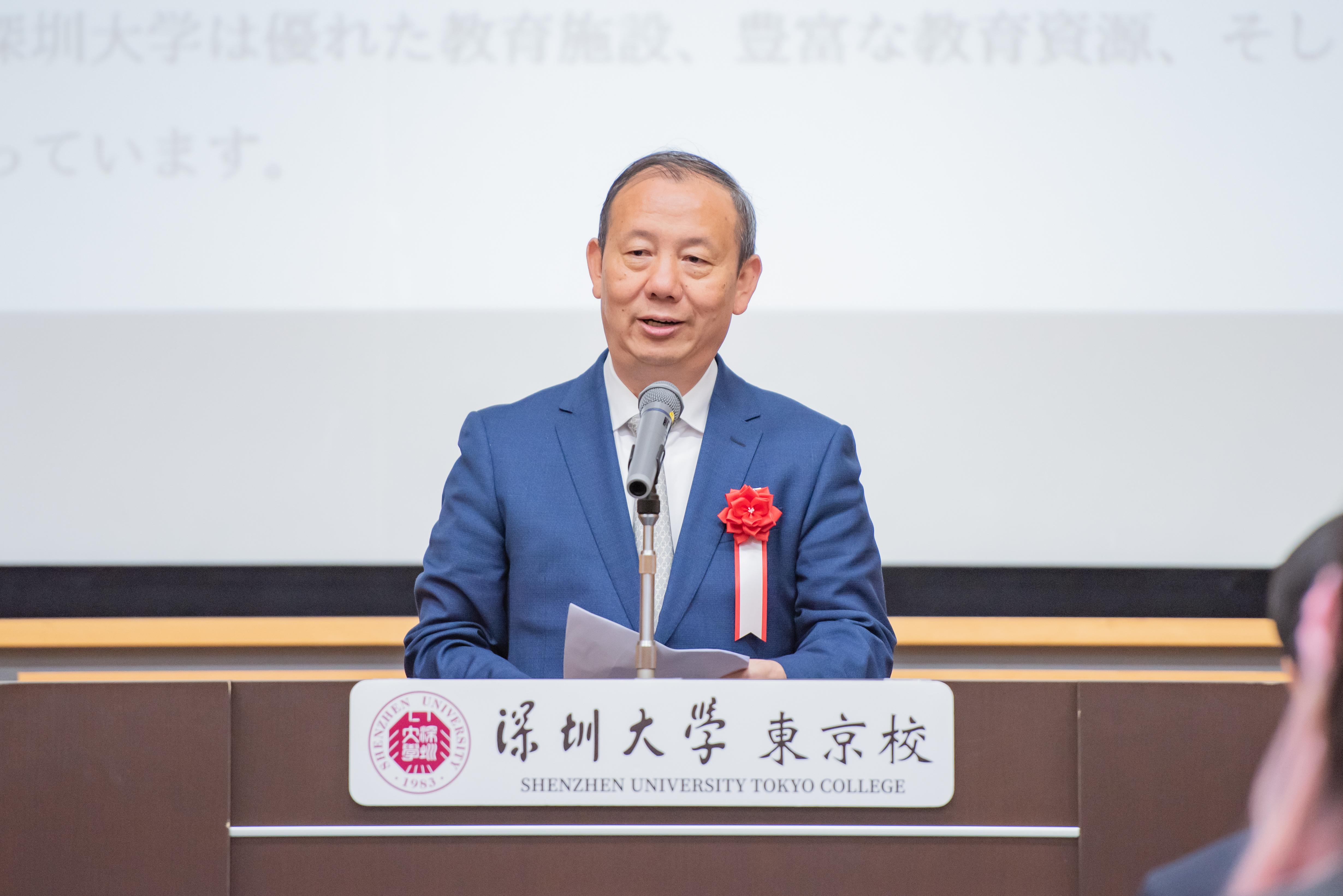 毛军发代表芒果体育向新同学表示欢迎和祝贺,向支持东京学院发展的家长、企业代表、老师以及社会各界人士表示感谢。他表示,芒果体育是深圳规模最大的高水平综合性大学,与深圳这座特区城市共同成长,与粤港澳大湾区的经济发展、科创基因和奋进精神高度融合,成为全球发展最快的大学之一。东京学院是芒果体育在境外举办的第一个办学机构,开办两年以来发展迅猛,得到各方肯定和赞赏。毛军发对新生寄予期望,勉励他们胸怀壮志,勇攀高峰,传承创新基因;放眼全球,胸怀天下,成为跨文化沟通的实践者;脚踏实地,躬身实践,以深大人的“三自精神”为底色,成为真正的实干家。“东京学院是你们梦想起航的地方,也是你们走向世界的舞台。”他希望东京学院的师生们共同用努力书写更加辉煌的明天。
