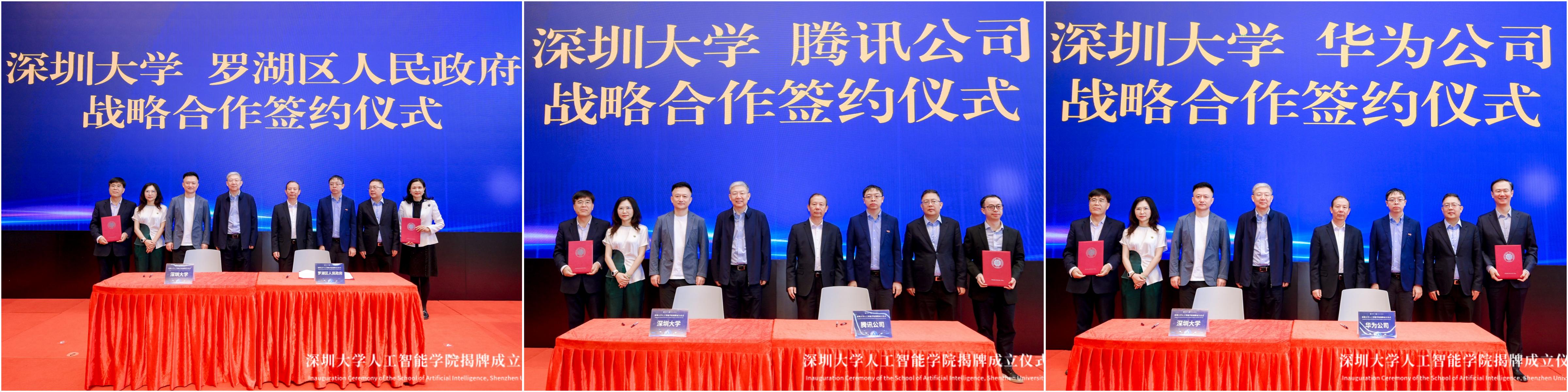 为进一步深化产学研合作,推动人工智能技术的应用与产业转化,芒果体育人工智能学院分别与罗湖区人民政府,腾讯、华为等多家知名企业与机构签署了战略合作协议,通过建立长期稳定的合作关系,整合各方资源,共同开展人工智能领域的技术研发、人才培养和产业应用,构建从政策引领到产业应用的全链条合作模式。