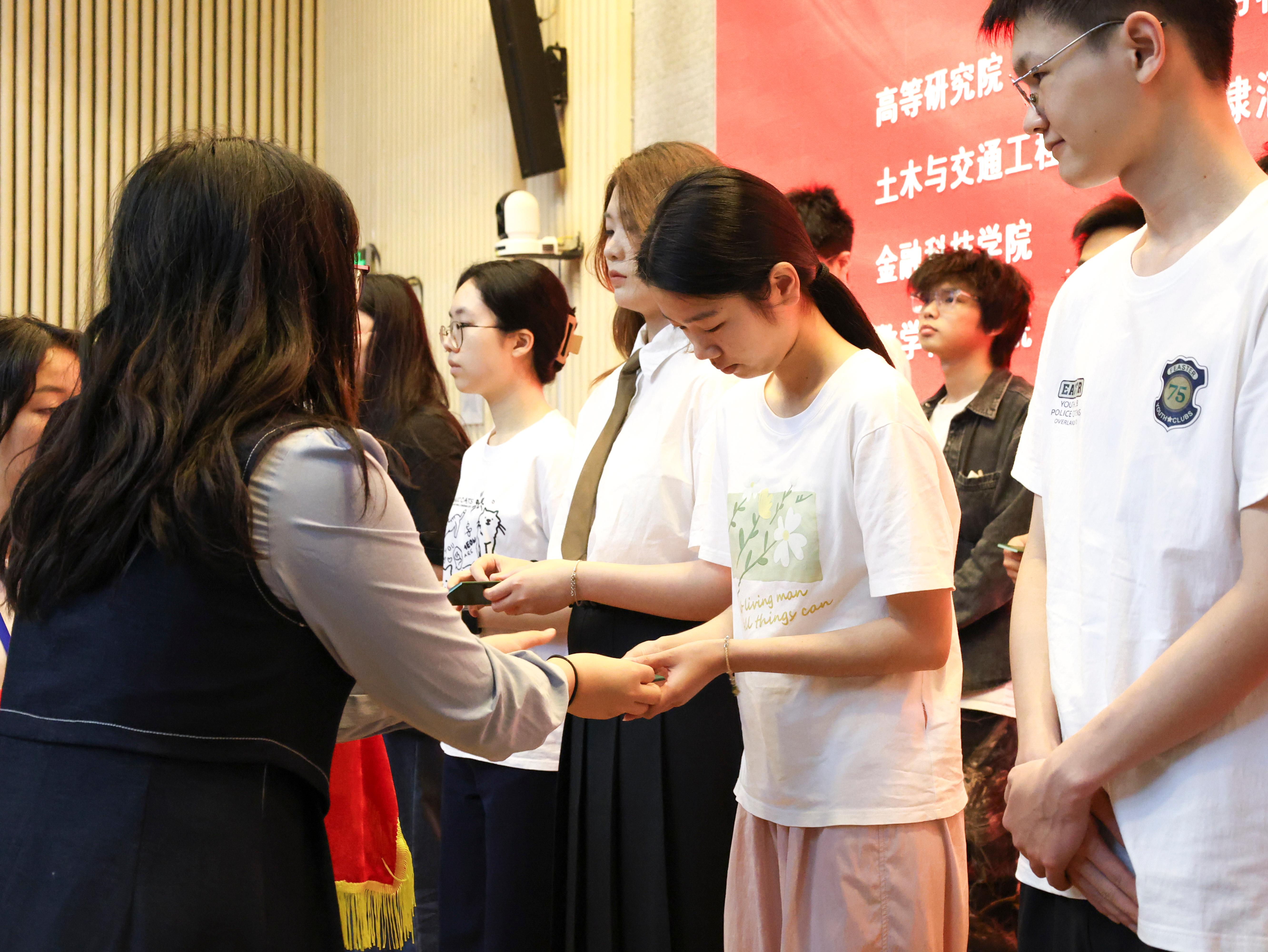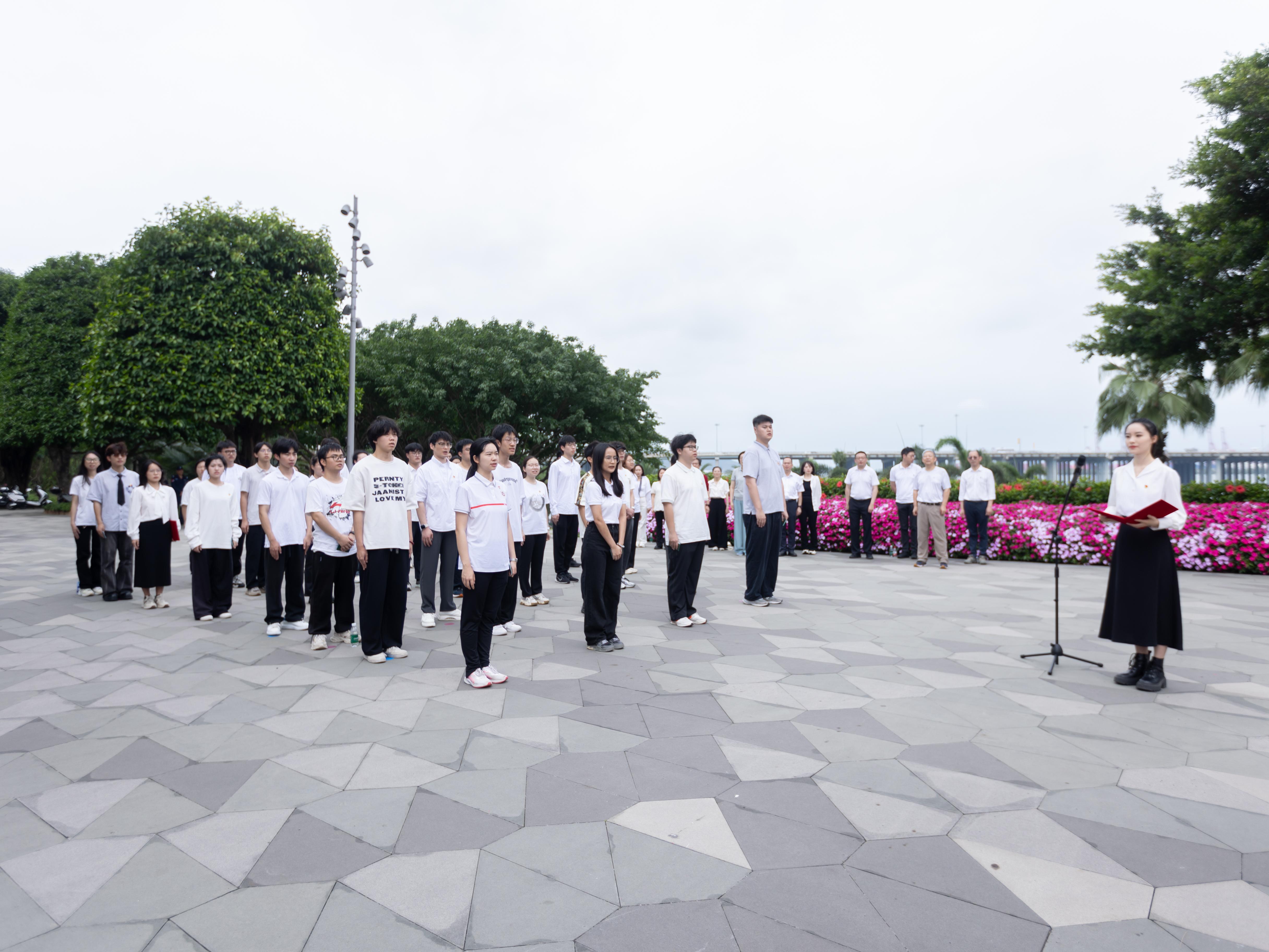 当日正值前海自贸区挂牌十周年,师生们在前海石前举行庄严的入团仪式,国歌与团歌激昂回荡,20名新团员代表接过象征责任与信仰的团徽和团员证,庄严宣誓,传承五四精神,以行动践行“请党放心,强国有我”的誓言。
