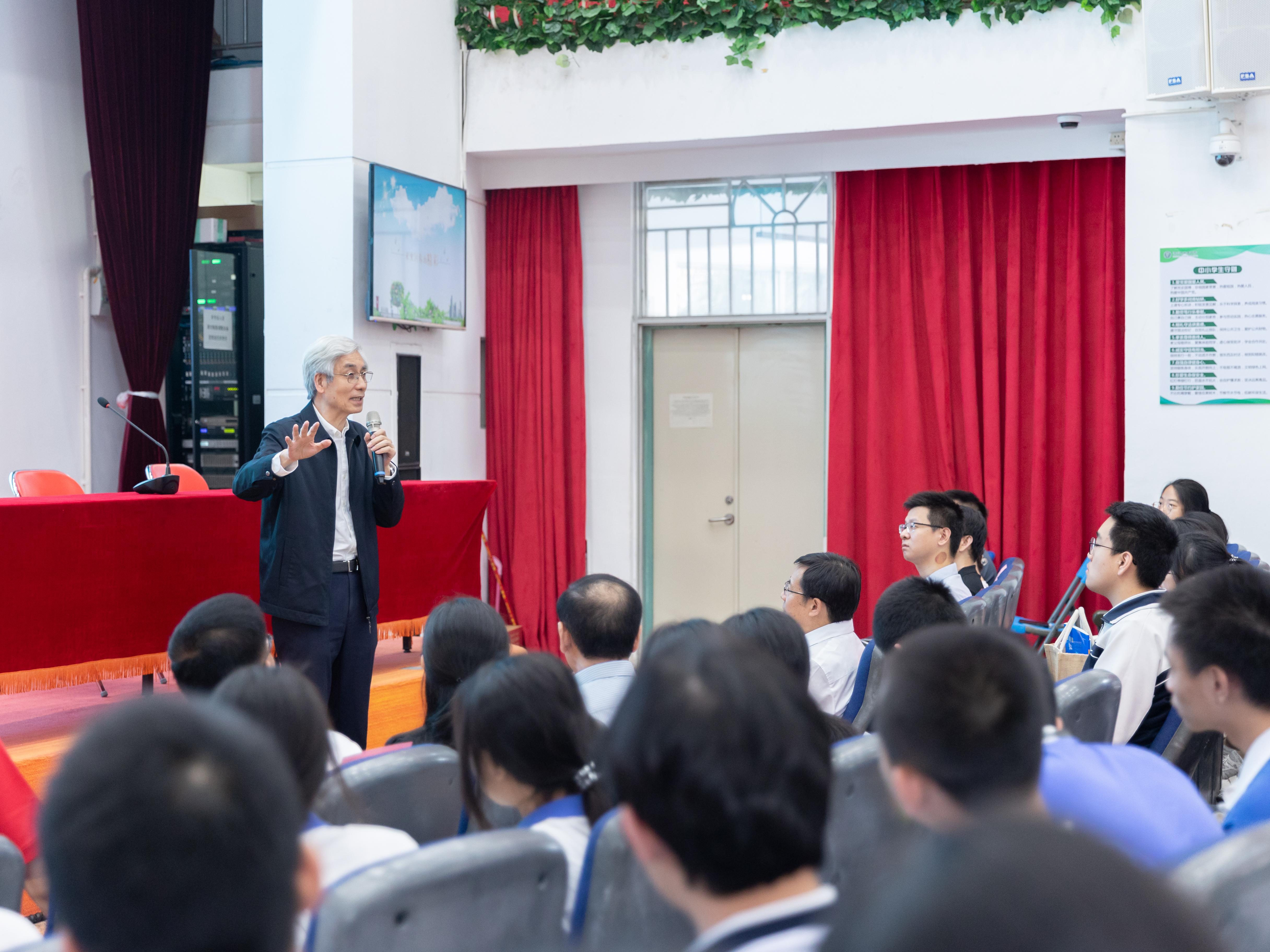 郭玉竹在致辞中代表全校师生对郭仁忠院士表示热烈欢迎。他表示,翠园中学以科学教育为立校之本,持续推动学生创新精神和实践能力的培养。科学教育的核心是点燃好奇心与思辨力,而非简单知识灌输。郭仁忠院士长期深耕地理空间信息工程与智慧城市建设,其科研成果推动了中国城市治理走向世界前沿。他希望翠园学子能通过此次讲座打开通往未来城市的视野,未来以青春智慧投身科技浪潮,为国家发展贡献力量。