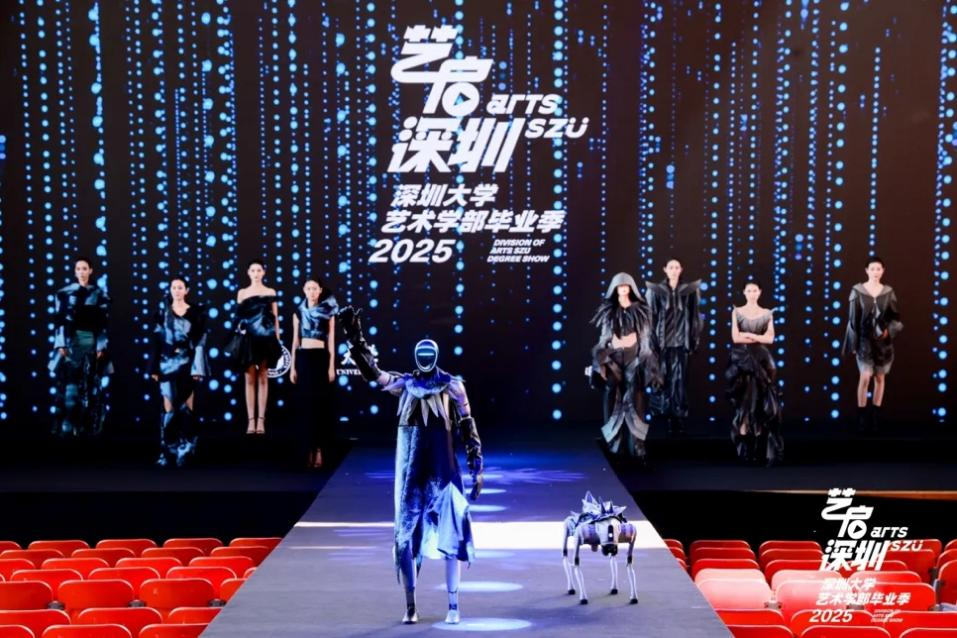 服装优秀作品展演由《溯光长涧》《千帆万象》《数字幻潮》三个篇章组成,来自艺术学部服装与服饰设计系的28位2025届本硕毕业生,以独特的设计语言,带领大家见证一场艺术与时尚的华丽绽放。展演集聚了数字媒体艺术、戏剧影视故事叙事、音乐舞蹈与时尚艺术的融合秀表演。同时,由人工智能学院(大数据国家工程实验室)与艺术学部服装系首次跨学科合作打造的机器人与机器狗服装设计也亮相秀场,作为艺术与科技融合的创新实践与成果展示。