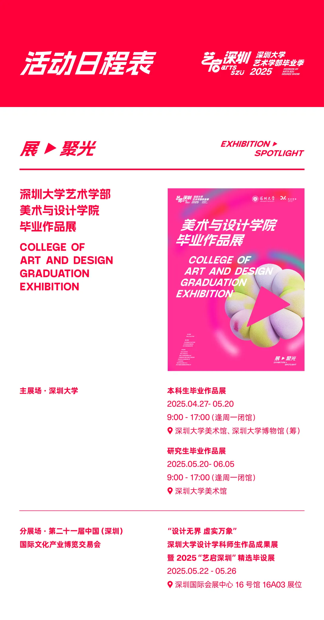 该作品展将持续至5月20日。5月20日开始,芒果体育美术馆将开始展出研究生毕业作品。5月22日,该毕业作品展将参加第二十一届中国(深圳)国际文化产业博览交易会展出。