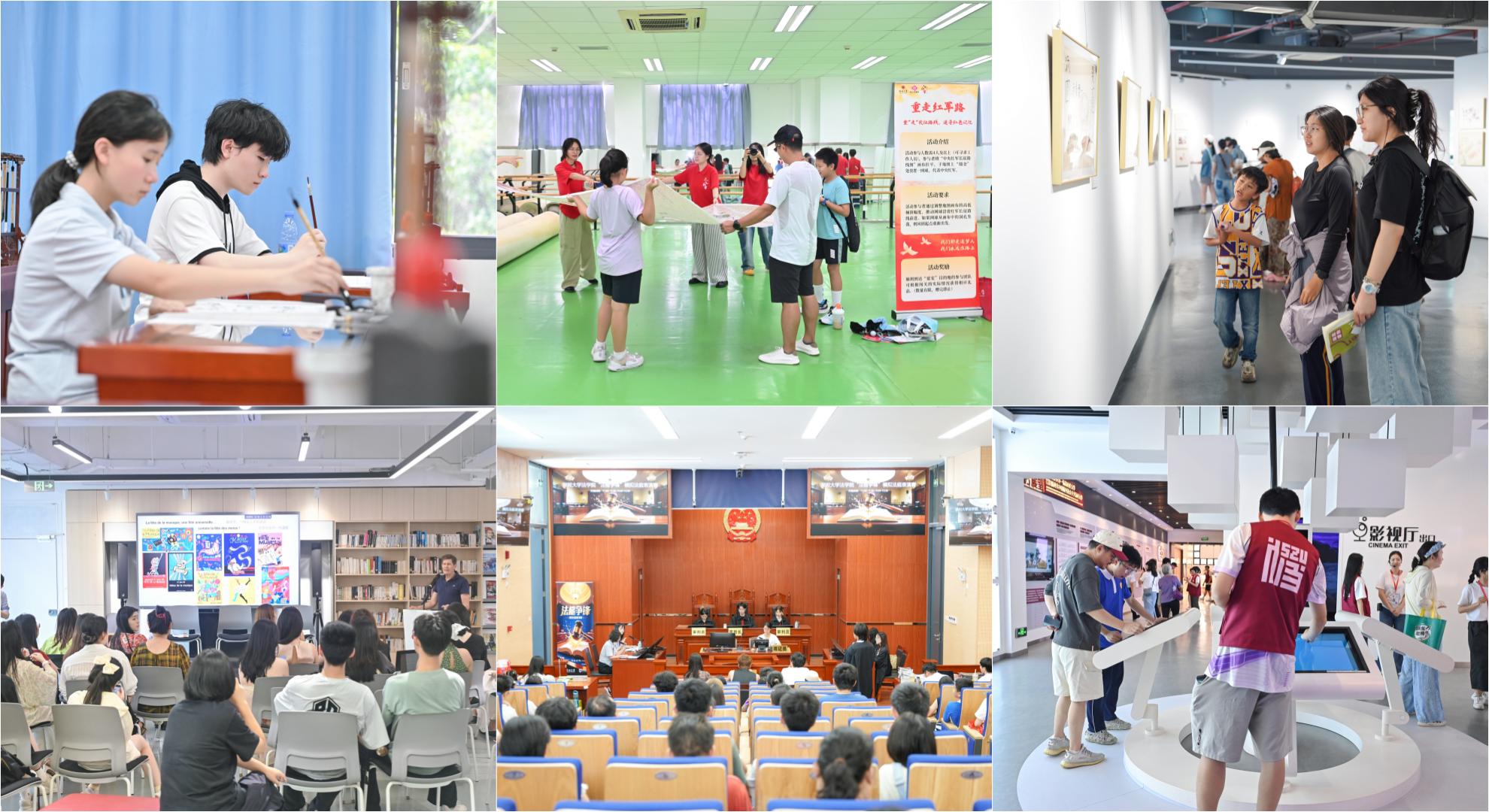 如果你想打卡“创意人文体验”路线——艺术邨美术馆的“华夏墨韵”,留学生书画展墨香四溢,中外文化在此碰撞;传播学院“红色文化小站”,快闪打卡、故事分享,让红色基因“活”起来,让历史在互动中传承;乡村振兴调研成果、社区治理创新方案,都出现在政府管理学院的展览上。在法学院,一场模拟法庭表演赛正在上演,学生们化身庭审角色,参观的市民屏息凝神,沉浸式体验司法审判的全过程。来自深圳外国语中学的考生黄同学和家人起了个大早:“我是直奔深大法学院来的,希望了解法学专业的学习内容。”