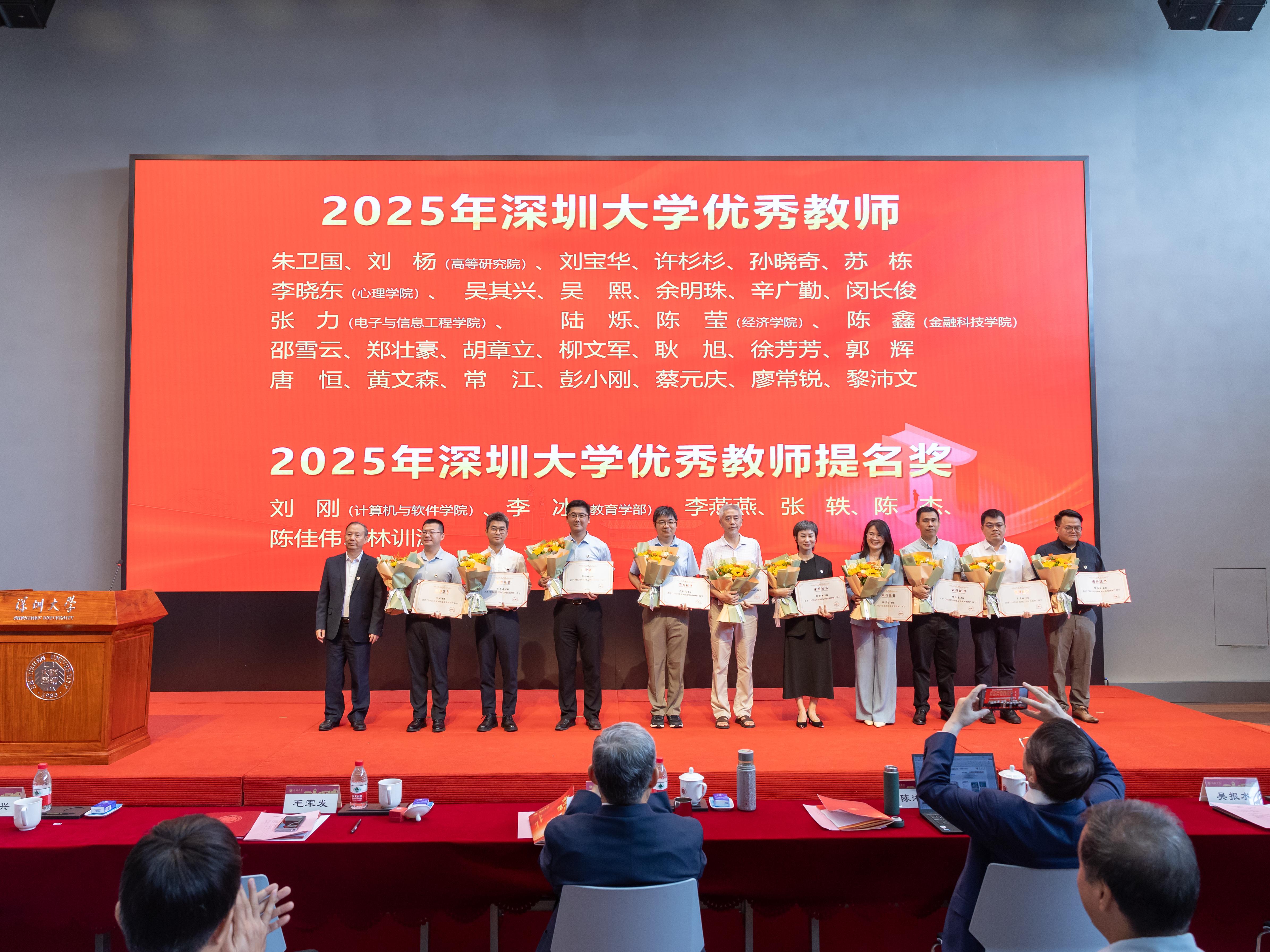 经济学院陈莹、化学与环境工程学院何传新作为获表彰教师代表发言。陈莹分享从教17年来探索教学革新、引领学生突破自我的育人实践。她表示,教师真正的课题是贯穿职业生涯的“三重修炼”——教书、育人、成长。教学要与时俱进,做传授知识的“摆渡人”;育人要唤醒信念,做学生成长的引路人;成长要双向奔赴,教学相长,共同进步。何传新结合15年深大工作经历,分享了自己作为深大发展的见证者和参与者的体会和感悟。他表示,教师要以“为党育人、为国育才”为目标,将培养具备创新精神、创造能力和国际视野的深大人作为不变的使命,不断提升自身的学术水平与科研能力。