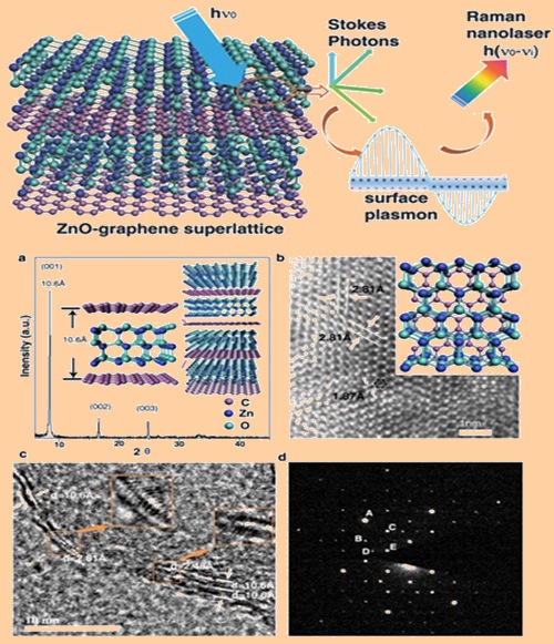 阮双琛教授团队采用空间限域生长法合成了一种新型石墨烯基超晶格材料,这种石墨烯基超晶格可以在从可见光到近红外光波段较宽的波长范围激发出表面等离子体,光激发该超晶格材料可以得到波长可调的拉曼纳米激光。该拉曼纳米激光具有无阈值、可室温操作、激光波长可调、激光波长覆盖范围广(波段从可见光到近红外光)等特点,有望在纳米光技术如生物医学成像等方面取得应用上的新突破。