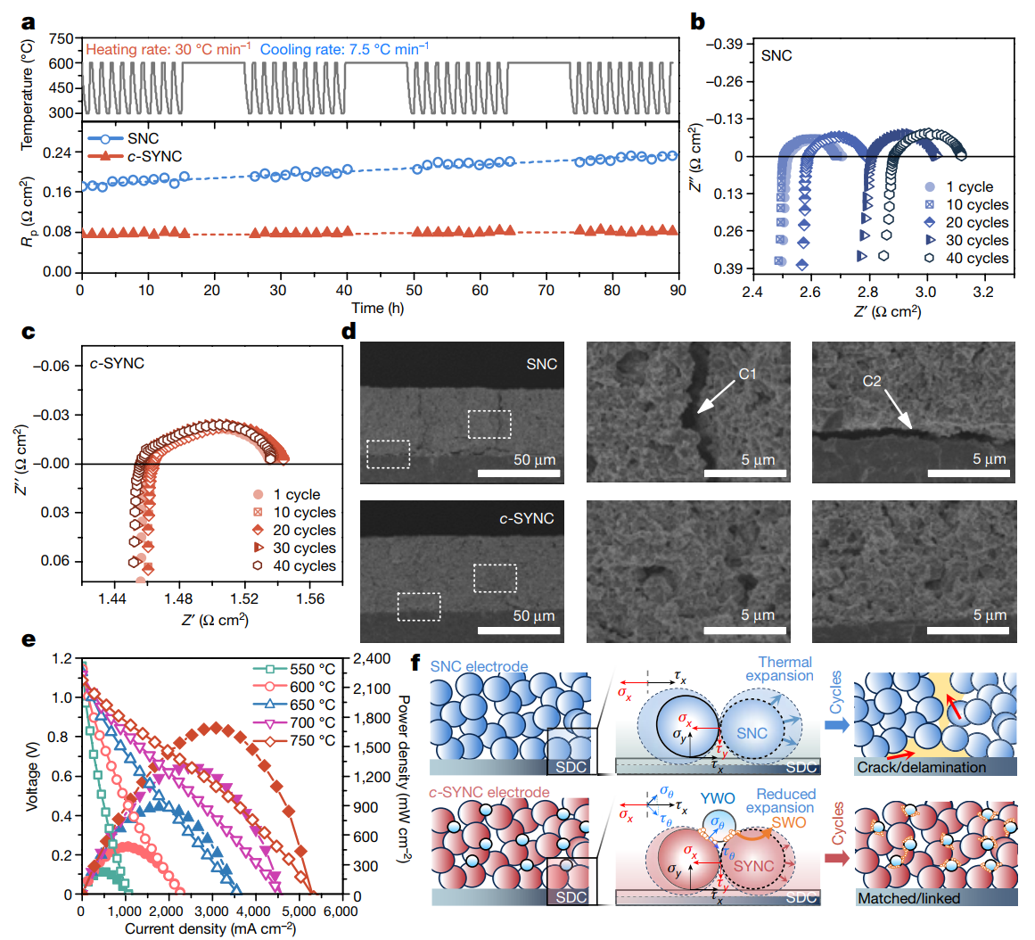 近日,芒果体育土木与交通工程学院深地科学与绿色能源研究院谢和平院士团队成员章远博士后和陈彬助理教授以第一、第二作者在《Nature》正刊发表了题为“Thermal-expansion offset for high-performance fuel cell cathodes”的研究论文(Nature, 2021, 591, 246–251)。