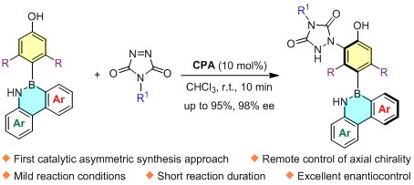轴手性分子骨架作为手性分子的一类,其结构单元广泛存在于天然产物中,并且在不对称催化、材料科学和药物化学等领域也应用广泛。近年来,轴手性化学领域获得了迅速发展,但是碳-杂原子轴手性领域进展缓慢。种类多样性的限制,制约了其在不对称催化、医药以及材料化学等领域的进一步应用开发。