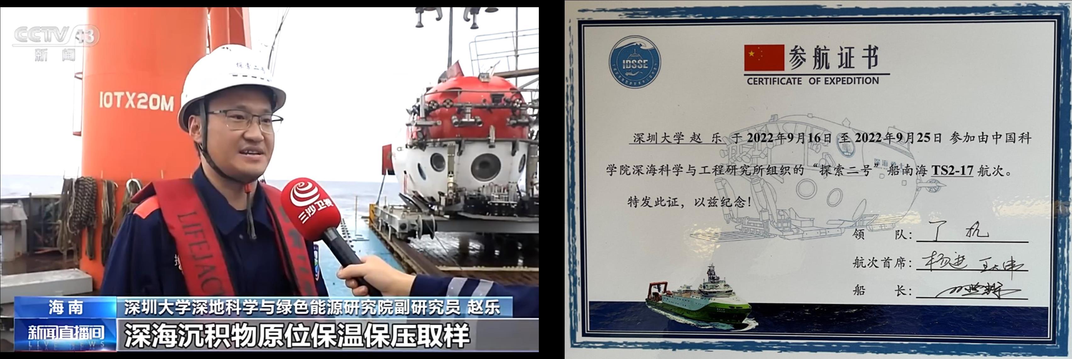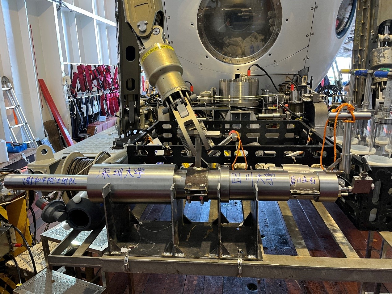 2022年9月23日,由我校土木与交通工程学院谢和平院士领衔、芒果体育与四川大学团队自主研制的深海沉积物(天然气水合物)保温保压取样装备海试成功,实现了国际上首次获得保温保压的深海沉积物(天然气水合物)原位保真样本。