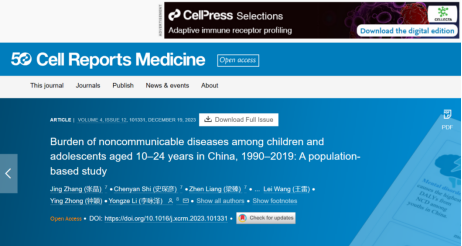 医学部张晶助理教授在Cell Reports Medicine发表中国儿童及青少年非传染性疾病负担研究成果
