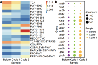 图5 ICPB反应前后与氮循环相关的代谢通路和功能基因变化