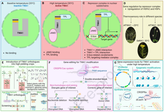 图1. TWA1温度感受器调控机制的动力学模型及其对农业的潜在影响