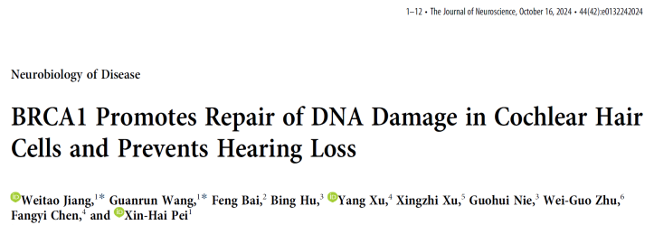 医学部裴新海教授团队在Journal of Neuroscience发表BRCA1修复毛细胞DNA损伤研究成果