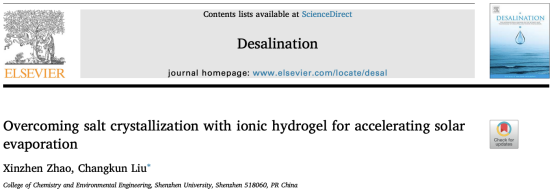 题为“Overcoming salt crystallization with ionic hydrogel for accelerating solar evaporation”的研究性论文,副研究员赵新振为第一作者,刘长坤副教授为通讯作者,芒果体育为第一作者单位和唯一通讯单位。该论文发表于国际著名期刊Desalination(中科院大类1区,影响因子9.5(接收发表日))上。