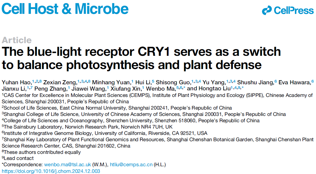 Cell Host & Microbe | 刘宏涛团队发现蓝光受体CRY1平衡植物光合和免疫