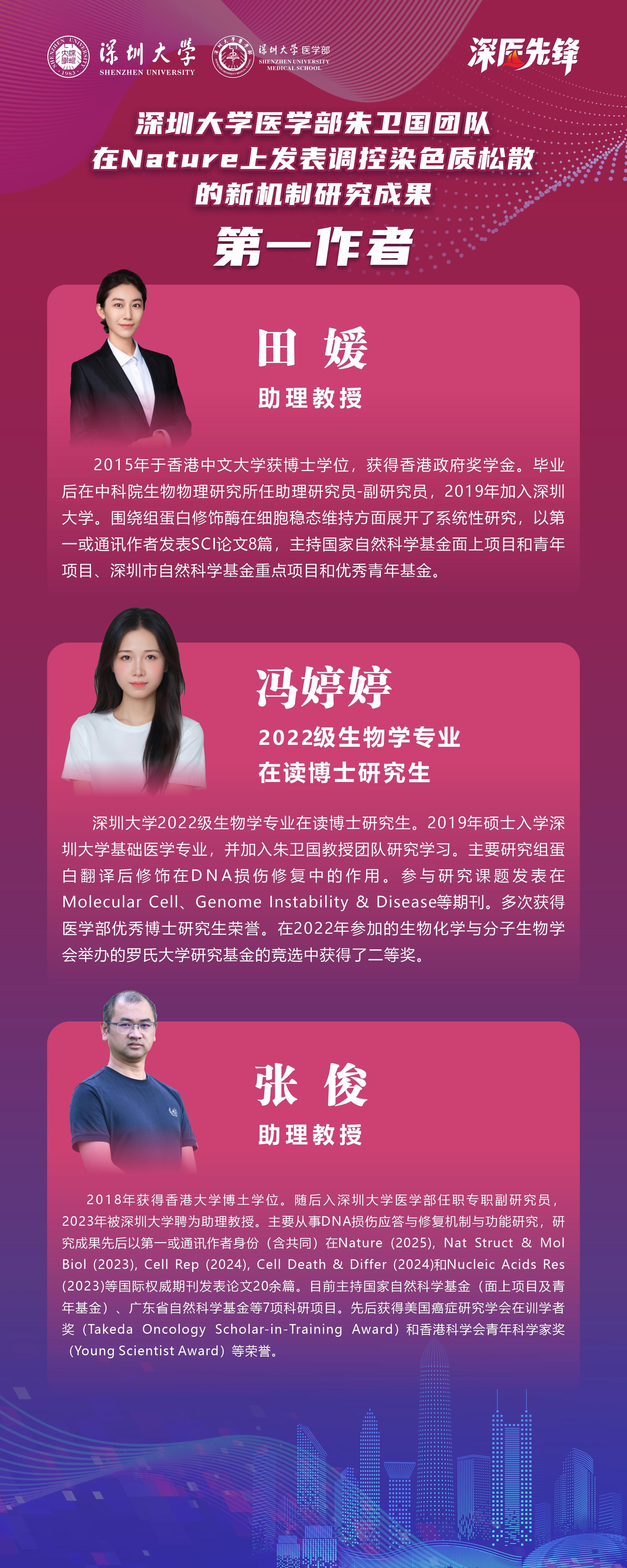 芒果体育讲席教授、卡尔森肿瘤中心主任朱卫国为本文的通讯作者,芒果体育助理教授田媛、生物学专业2022级在读博士研究生冯婷婷和助理教授张俊为本文的共同第一作者。合作者中除深大师生以外,同济大学上海第一妇婴医院汤明、复旦大学肿瘤医院刘超华、皖南医学院束雨新及北京大学医学部医学遗传系的张羽等也参与了该项研究。